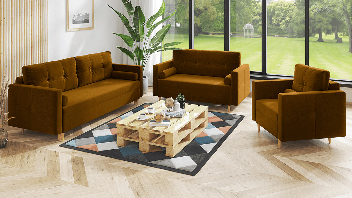 Domů Nábytek Obývací pokoj Sedací soupravy FRONTI Sedací souprava MARTEN 3+2+1 hořčicová - MONOLITH 48