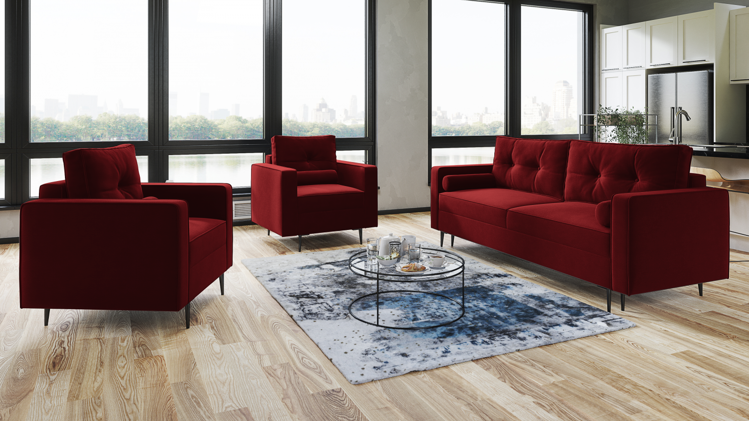 FRONTI Sedací souprava MELVILE 3+1+1 červená - DREAM VELVET 202.10