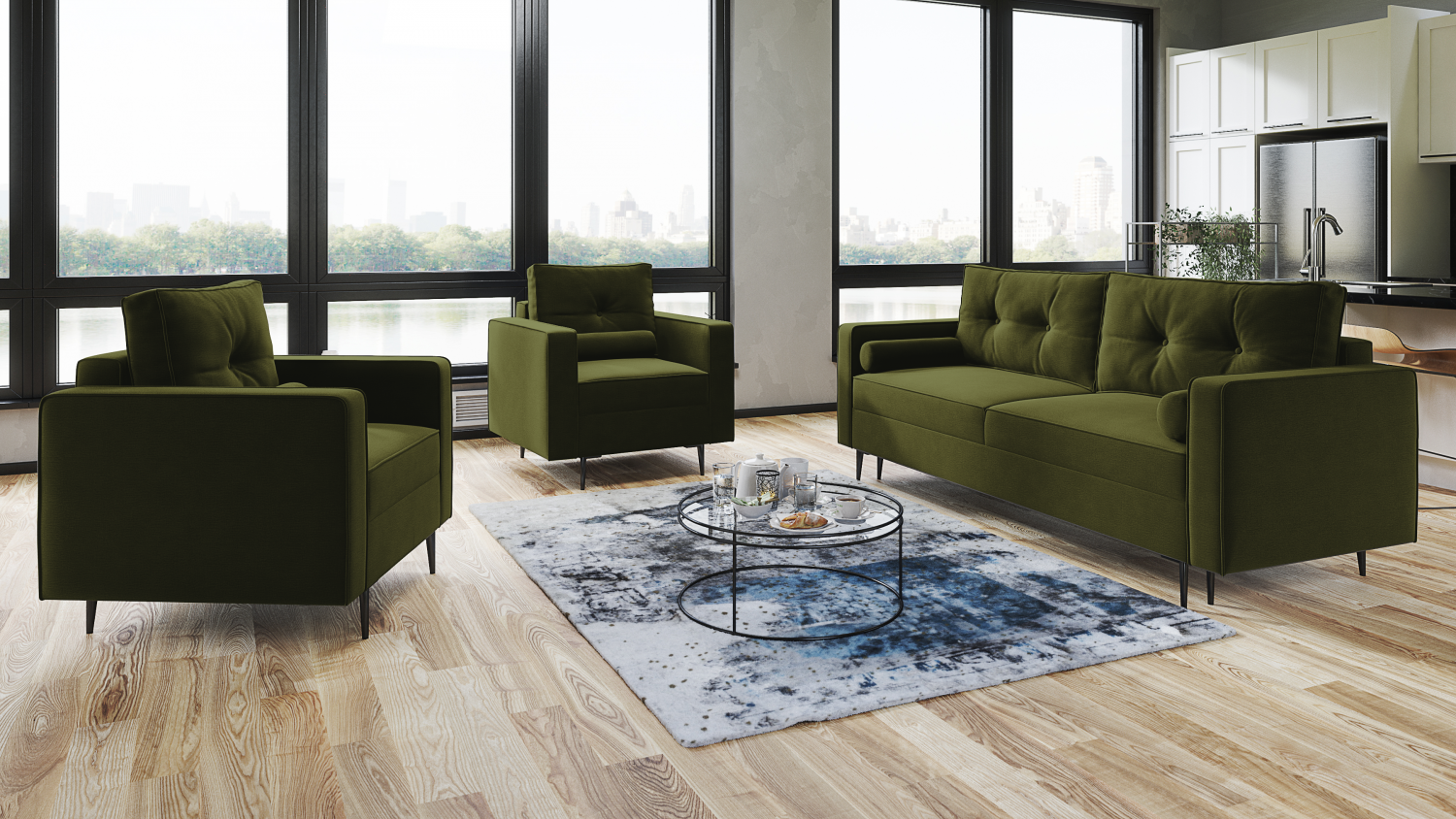 FRONTI Sedací souprava MELVILE 3+1+1 světlezelená - MONOLITH 38