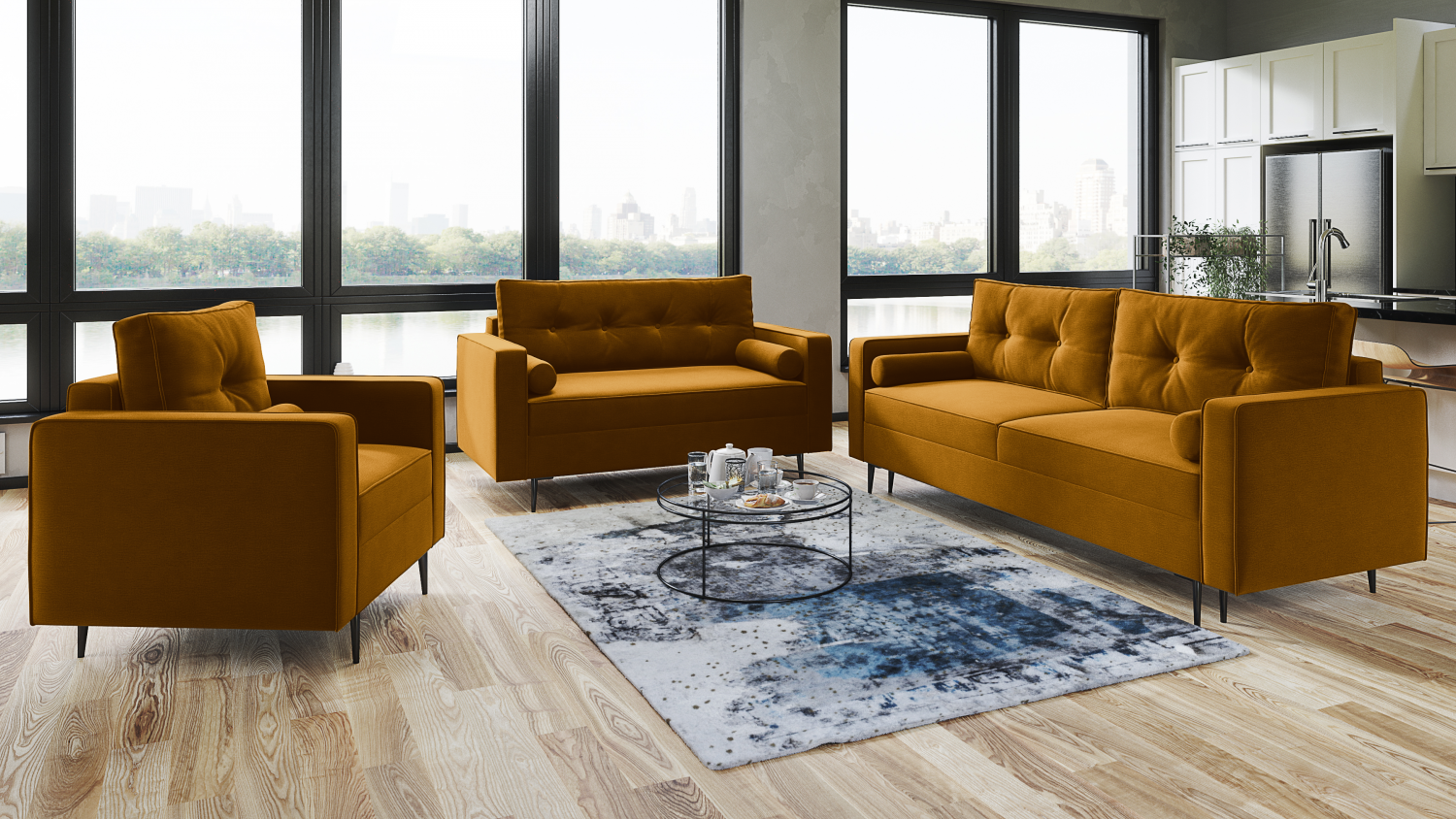 FRONTI Sedací souprava MELVILE 3+2+1 hořčicová - MONOLITH 48