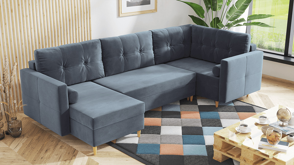ROZMĚRY: Šířka: 295 cm Hloubka: 145 cm Hloubka sedu: 80 cm Výška sedu: 46 cm Výška: 95 cm Plocha na spaní: 150x270 cm