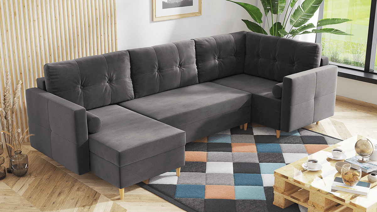 ROZMĚRY: Šířka: 295 cm Hloubka: 145 cm Hloubka sedu: 80 cm Výška sedu: 46 cm Výška: 95 cm Plocha na spaní: 150x270 cm