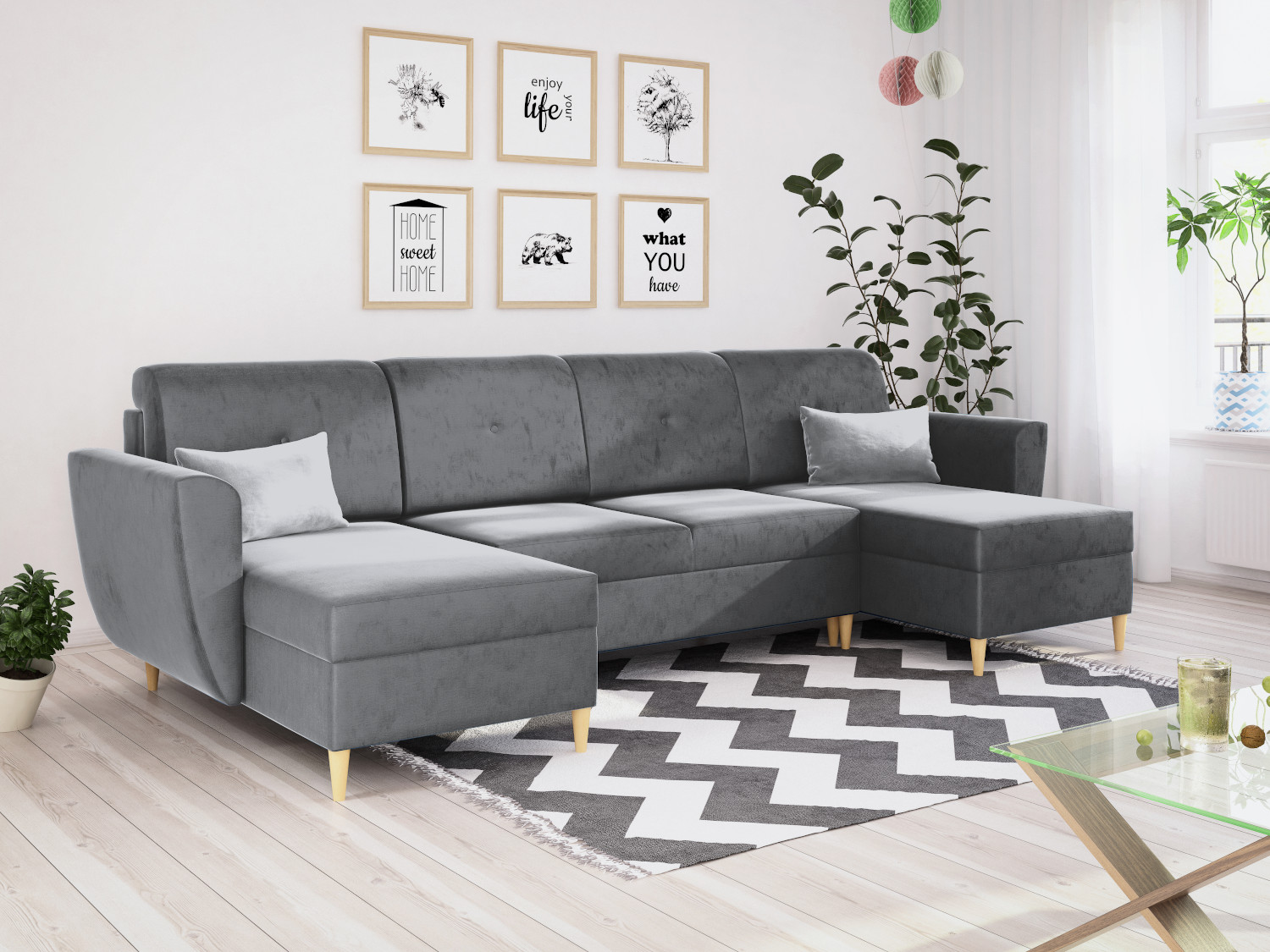 ROZMĚRY: Šířka: 300 cm Hloubka: 145 cm Hloubka sedu: 80 cm Výška sedu: 46 cm Výška: 95 cm Plocha na spaní - 150x270 cm