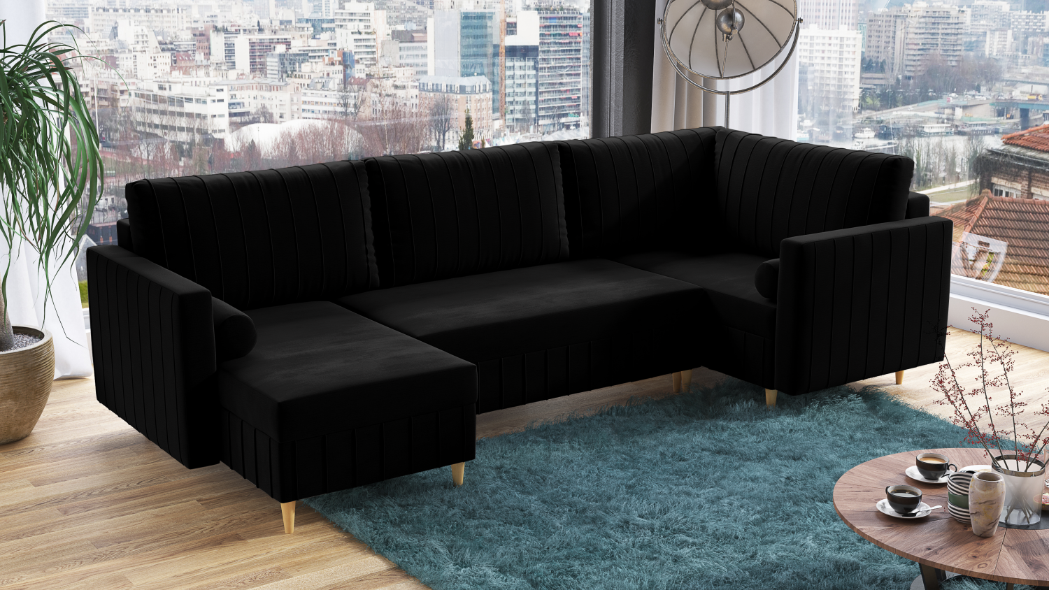 FRONTI Sedací souprava WARNER černá - DREAM VELVET 202.12