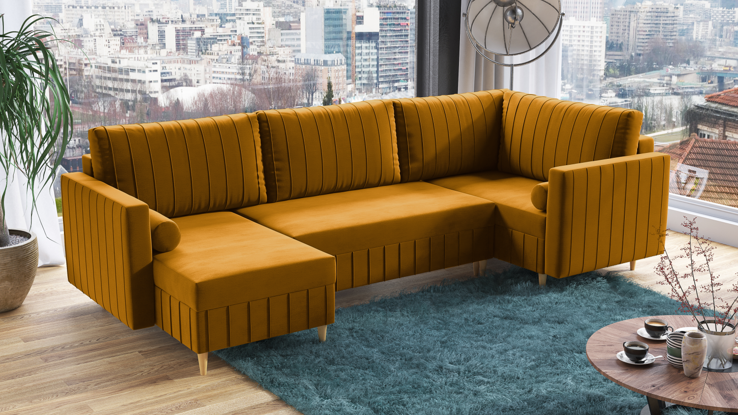 FRONTI Sedací souprava WARNER hořčicová - MONOLITH 48