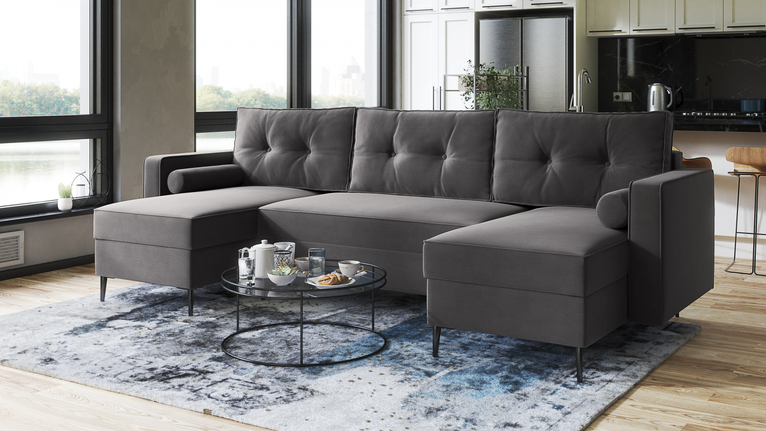 ROZMĚRY: Šířka: 290 cm Hloubka: 145 cm Hloubka sedu: 80 cm Výška sedu: 48 cm Výška: 97 cm Plocha na spaní - 150x270 cm