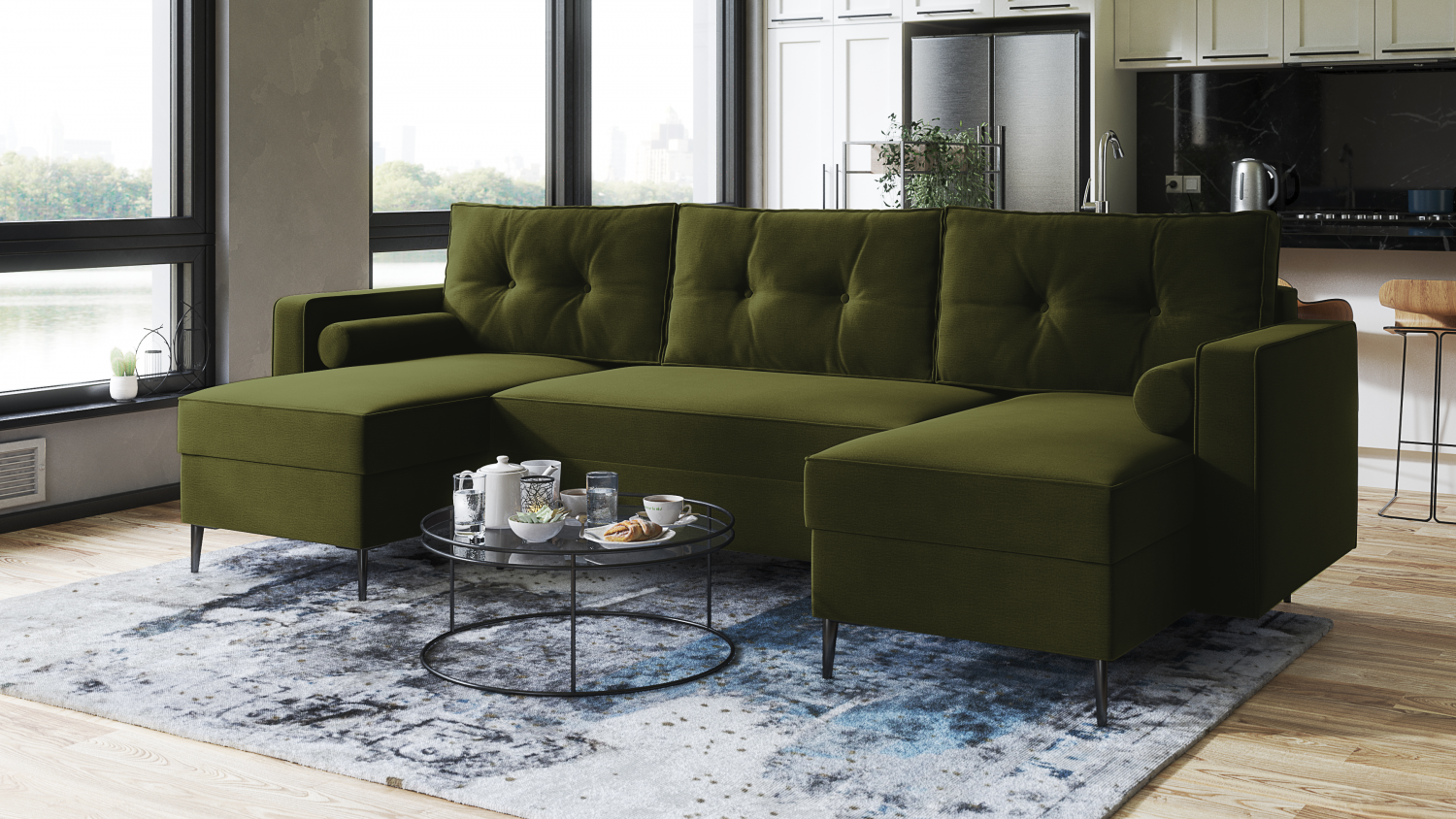 ROZMĚRY: Šířka: 290 cm Hloubka: 145 cm Hloubka sedu: 80 cm Výška sedu: 48 cm Výška: 97 cm Plocha na spaní - 150x270 cm
