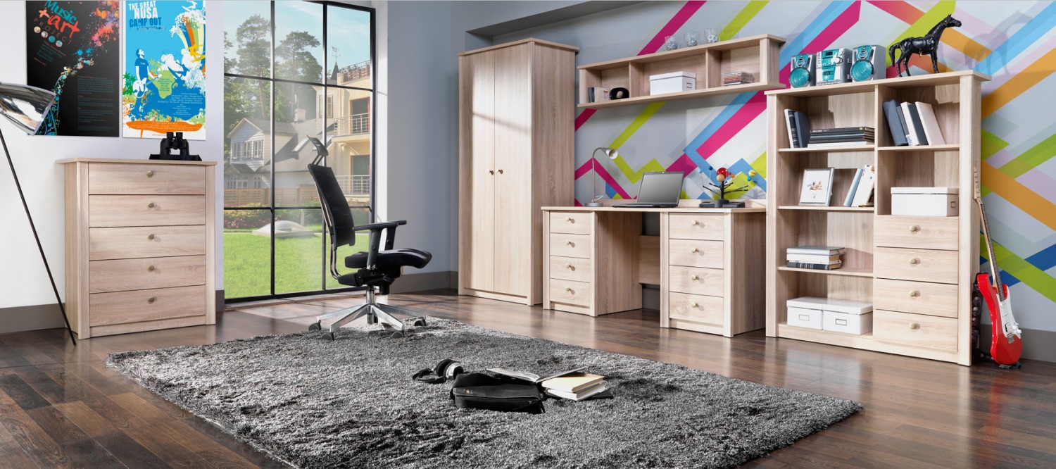 Sada obsahuje: Regál F11: výška: 145 cm / šířka: 110 cm / hloubka: 31 cm Šatní skříň F2: výška: 202 cm / šířka: 90 cm / hloubka: 54 cm Psací stůl F16: výška: 75 cm / šířka: 160 cm / hloubka: 60 cm Závěsná police F13: výška: 24 cm / šířka: 160 cm / hloubka: 23 cm Komoda F5: výška: 105 cm / šířka: 80 cm / hloubka: 54 cm Barva: dub sonoma čokoláda dub sonoma Nábytek ze systému Finezja se vyznačuje vysokou kvalitou, jednoduchými tvary pevných látek a originálními barvami, díky nimž bude váš interiér skutečně jedinečný. Díky široké škále prvků budete moci vytvářet různé kompozice, které se hodí téměř do každé místnosti. Nábytek z laminované desky, hrany zajištěné ABS hranou. Dekorativní profilová lišta.