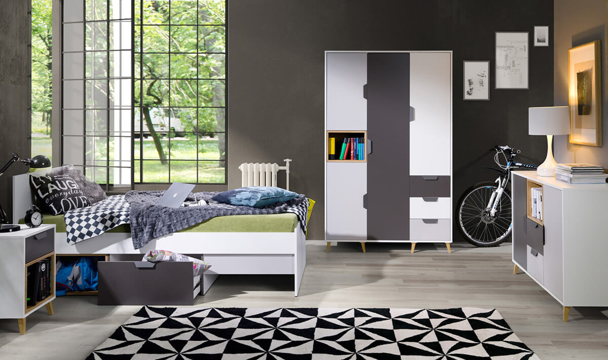 Komponenty sady (šířka / výška / hloubka): Noční stolek JOKER 11 (41/58/40) Postel JOKER 15 (96/95/204) Šatní skříň JOKER 1 (120/190/55) Komoda JOKER 8 (120/84/40)