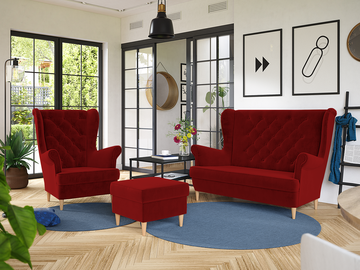 ROZMĚRY: Šířka křesla: 83 cm Výška sedáku: 40 cm Hloubka sedáku: 60 cm Šířka taburetu: 51 cm Hloubka taburetu: 51 cm Šířka pohovky: 140 cm Hloubka sedáku: 60 cm Výška pohovky: 102 cm