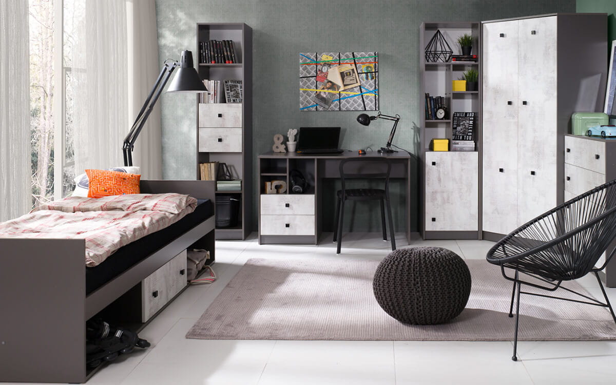 Dětský pokoj Konkret 14 Barva korpusu: Beton, Dveře: Dub wotan, Strana: Levá