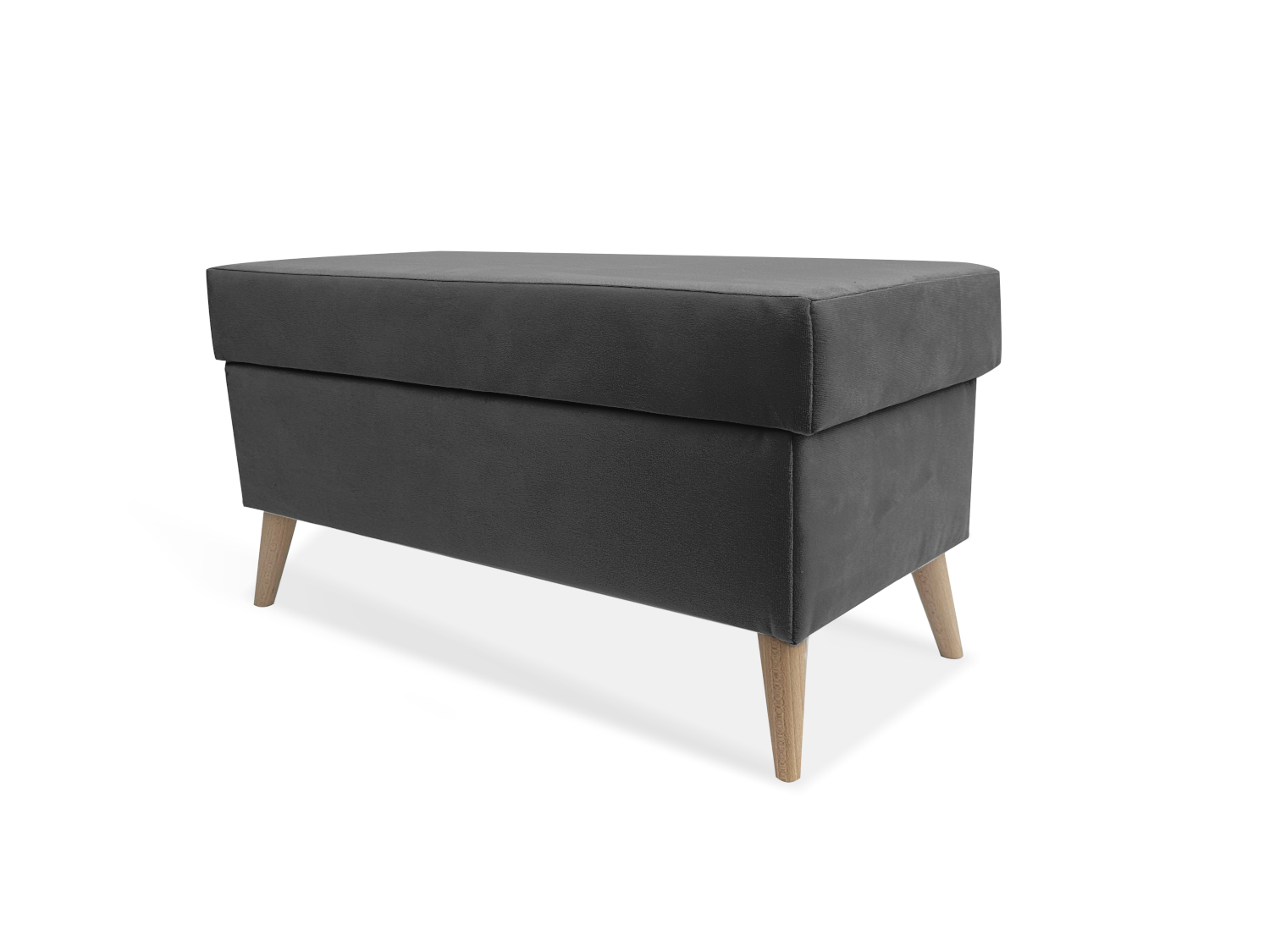 Taburet BAJO s úložným prostorem - grafitový Taburet BAJO – malá forma, velký styl! Někdy jsou to právě drobné doplňky, které mají největší vliv na charakter interiéru. Taburetka BAJO je důkazem toho, že funkčnost může jít ruku v ruce s designem. Kompaktní, lehká a extrémně stylová – ideální jako sedák, podnožka nebo praktický úložný prostor. Díky elegantní, sametové povrchové úpravě a stylovým dřevěným nohám se BAJO perfektně hodí do moderních, skandinávských i klasických aranžmá. Je to kus nábytku, který nejen dobře vypadá, ale také skvěle funguje každý den. PROVEDENÍ Rozměry: 60 × 28 × 42 cm – ideální do malých prostor, chodeb, k posteli nebo do obývacího pokoje. Měkké sedátko s výškou 11 cm – pohodlné a příjemné na dotek. Vnitřní přihrádka s výškou 19 cm – schová drobnosti, deky, knihy nebo cokoli, co chcete mít po ruce. Dřevěné nohy – dodávají nábytku lehkost a stabilitu a zároveň zdůrazňují elegantní charakter. Minimalistický tvar – taburet, který doplní interiér, aniž by mu dominoval. K dispozici v mnoha barvách. Rozměry Šířka - 60 cm Hloubka - 28 cm Výška - 42 cm Rozměrová tolerance: +/- 3 cm
