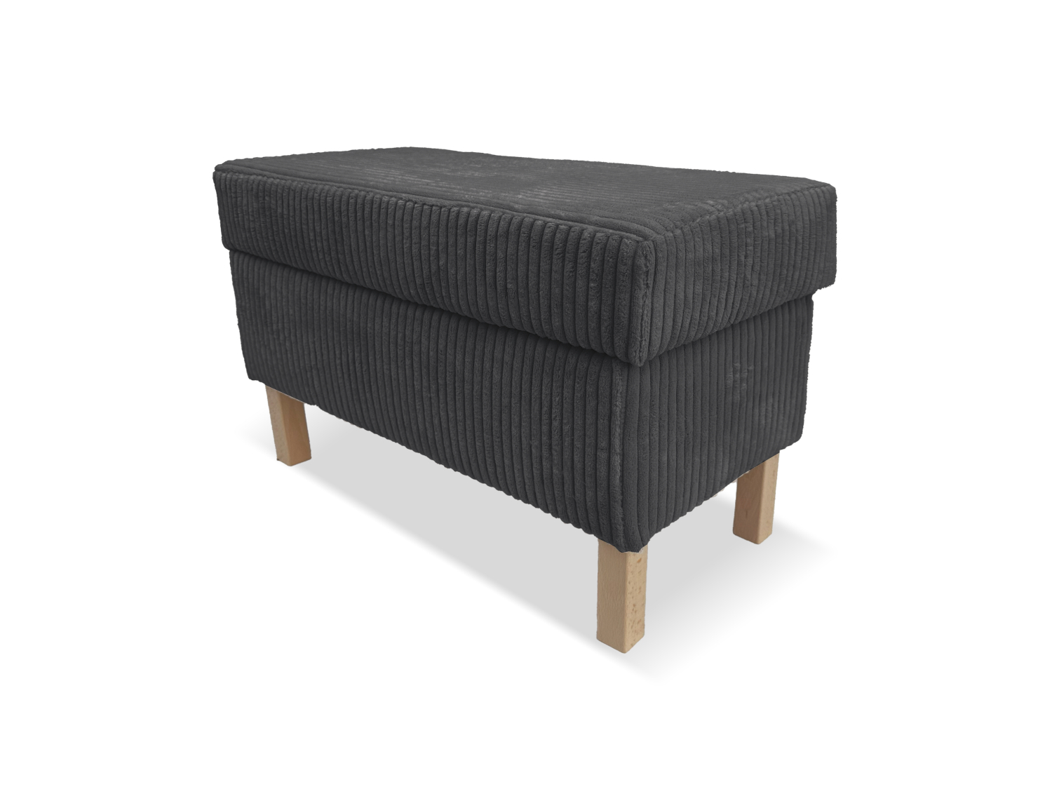 Taburet ELLA s úložným prostorem - manšestr - grafitový Taburetka ELLA – malá věc, velká změna! ELLA je jako šperk ve světě nábytku – malá, ale poutavá. Její forma je úsporná, ale promyšlená a každý detail hovoří jazykem současné elegance. Je to kus nábytku, který k udělání dojmu nepotřebuje zbytečné dekorace – potřebuje pouze kvalitu zpracování, promyšlený design a funkčnost, která překvapí. ELLA je perfektní tam, kde záleží na harmonii, řádu a stylu. PROVEDENÍ Rozměry: 60 × 28 × 42 cm – ideální do malých prostor, chodeb, k posteli nebo do obývacího pokoje. Měkký sedák s výškou 11 cm – pohodlný a příjemný na dotek. Vnitřní kontejner s výškou 19 cm – schová drobnosti, deky, knihy nebo cokoli, co chcete mít po ruce. Dřevěné nohy – dodávají nábytku lehkost a stabilitu a zároveň zdůrazňují elegantní charakter. Minimalistický tvar – taburetka, která doplní interiér, aniž by mu dominovala. K dispozici v mnoha barvách. Rozměry Šířka - 60 cm Hloubka - 28 cm Výška - 42 cm Rozměrová tolerance +/- 3 cm