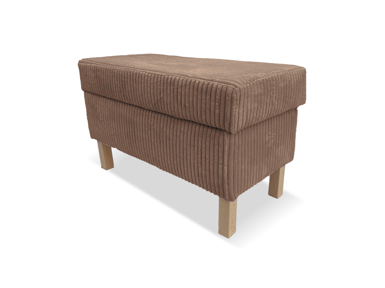 Taburet ELLA s úložným prostorem - manšestr - hnědý Taburetka ELLA – malá věc, velká změna! ELLA je jako šperk ve světě nábytku – malá, ale poutavá. Její forma je úsporná, ale promyšlená a každý detail hovoří jazykem současné elegance. Je to kus nábytku, který k udělání dojmu nepotřebuje zbytečné dekorace – potřebuje pouze kvalitu zpracování, promyšlený design a funkčnost, která překvapí. ELLA je perfektní tam, kde záleží na harmonii, řádu a stylu. PROVEDENÍ Rozměry: 60 × 28 × 42 cm – ideální do malých prostor, chodeb, k posteli nebo do obývacího pokoje. Měkký sedák s výškou 11 cm – pohodlný a příjemný na dotek. Vnitřní kontejner s výškou 19 cm – schová drobnosti, deky, knihy nebo cokoli, co chcete mít po ruce. Dřevěné nohy – dodávají nábytku lehkost a stabilitu a zároveň zdůrazňují elegantní charakter. Minimalistický tvar – taburetka, která doplní interiér, aniž by mu dominovala. K dispozici v mnoha barvách. Rozměry Šířka - 60 cm Hloubka - 28 cm Výška - 42 cm Rozměrová tolerance +/- 3 cm
