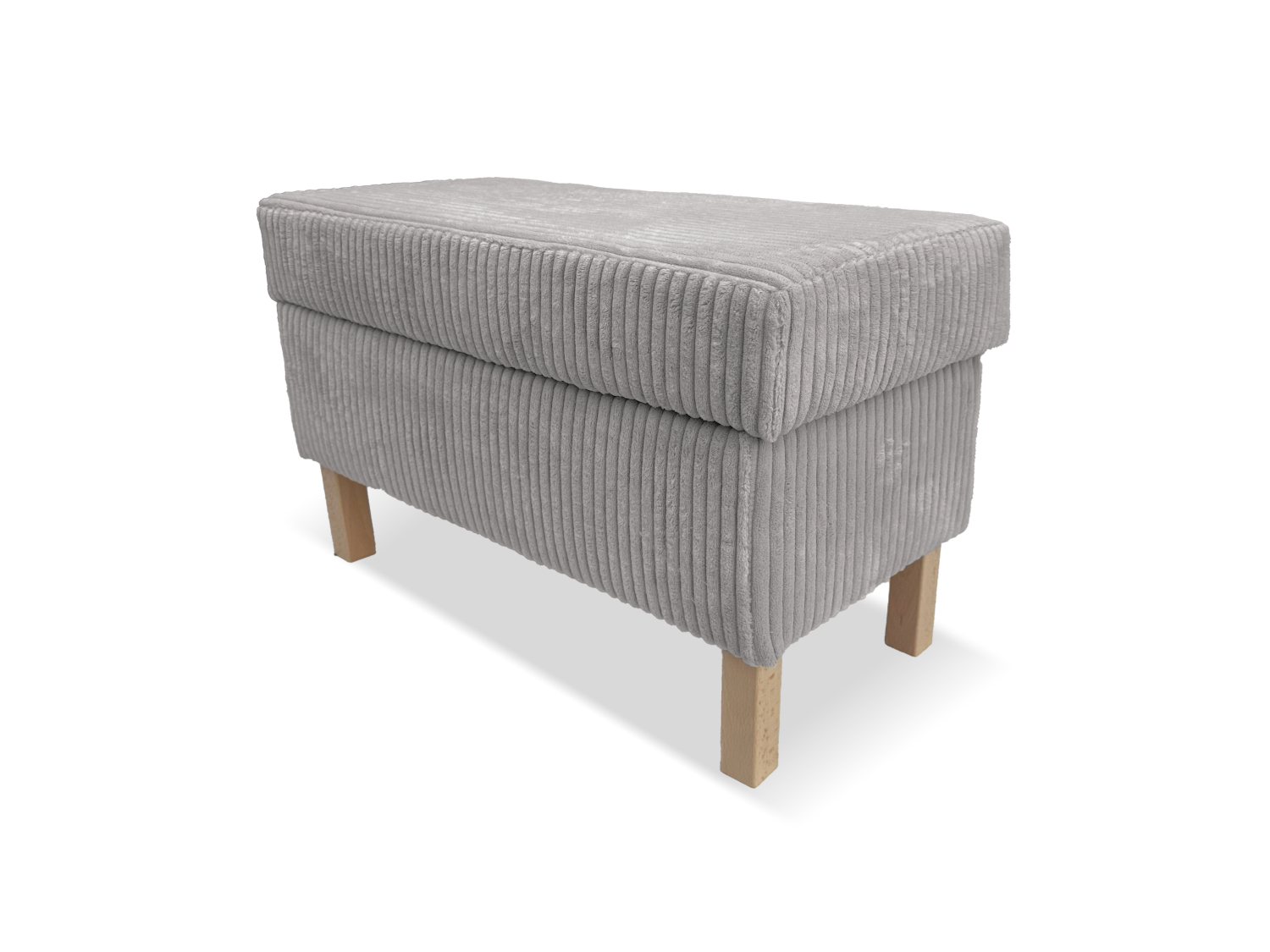 Taburet ELLA s úložným prostorem - manšestr - šedý Taburetka ELLA – malá věc, velká změna! ELLA je jako šperk ve světě nábytku – malá, ale poutavá. Její forma je úsporná, ale promyšlená a každý detail hovoří jazykem současné elegance. Je to kus nábytku, který k udělání dojmu nepotřebuje zbytečné dekorace – potřebuje pouze kvalitu zpracování, promyšlený design a funkčnost, která překvapí. ELLA je perfektní tam, kde záleží na harmonii, řádu a stylu. PROVEDENÍ Rozměry: 60 × 28 × 42 cm – ideální do malých prostor, chodeb, k posteli nebo do obývacího pokoje. Měkký sedák s výškou 11 cm – pohodlný a příjemný na dotek. Vnitřní kontejner s výškou 19 cm – schová drobnosti, deky, knihy nebo cokoli, co chcete mít po ruce. Dřevěné nohy – dodávají nábytku lehkost a stabilitu a zároveň zdůrazňují elegantní charakter. Minimalistický tvar – taburetka, která doplní interiér, aniž by mu dominovala. K dispozici v mnoha barvách. Rozměry Šířka - 60 cm Hloubka - 28 cm Výška - 42 cm Rozměrová tolerance +/- 3 cm