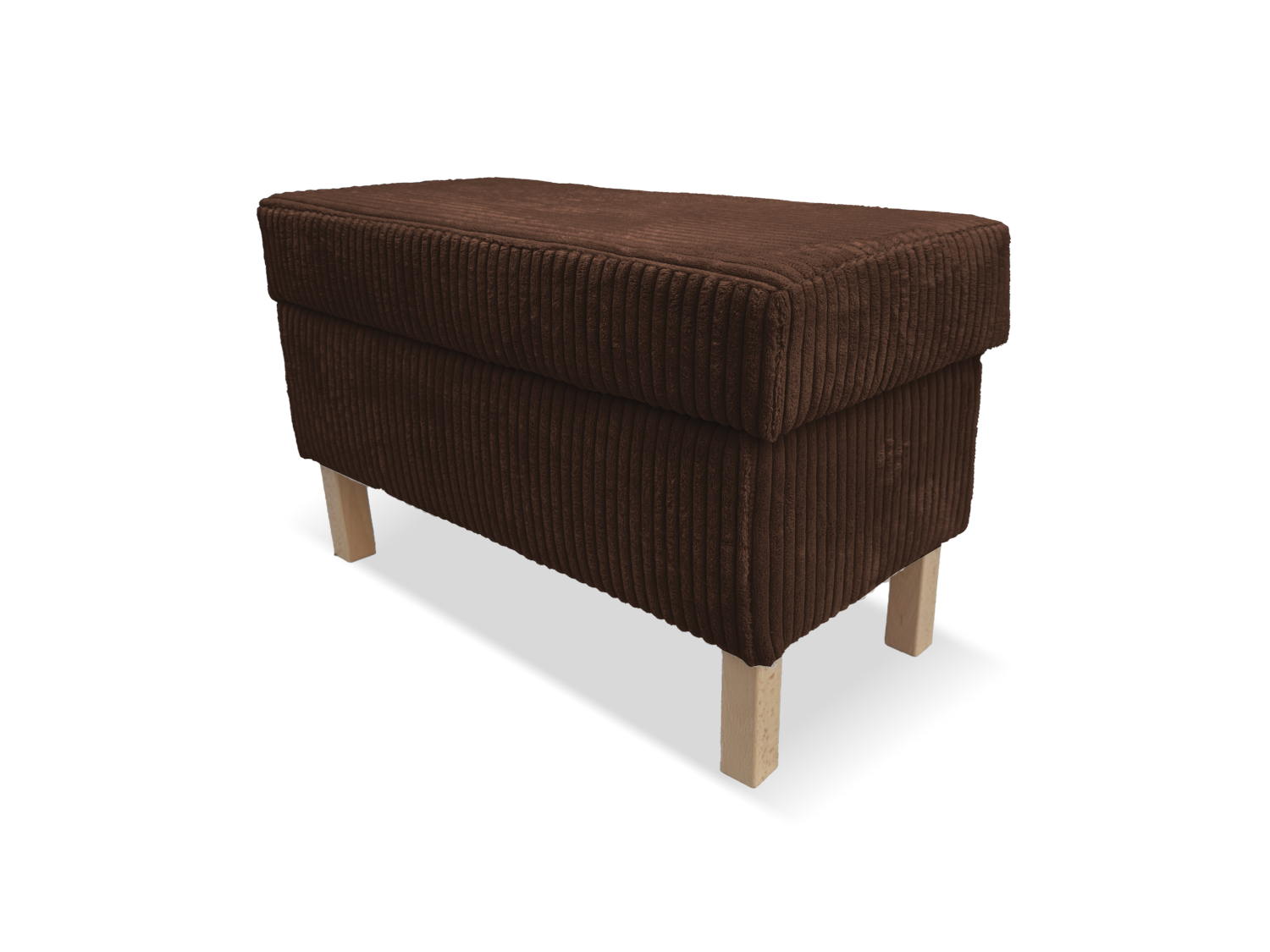 Taburet ELLA s úložným prostorem - manšestr - tmavěhnědý Taburetka ELLA – malá věc, velká změna! ELLA je jako šperk ve světě nábytku – malá, ale poutavá. Její forma je úsporná, ale promyšlená a každý detail hovoří jazykem současné elegance. Je to kus nábytku, který k udělání dojmu nepotřebuje zbytečné dekorace – potřebuje pouze kvalitu zpracování, promyšlený design a funkčnost, která překvapí. ELLA je perfektní tam, kde záleží na harmonii, řádu a stylu. PROVEDENÍ Rozměry: 60 × 28 × 42 cm – ideální do malých prostor, chodeb, k posteli nebo do obývacího pokoje. Měkký sedák s výškou 11 cm – pohodlný a příjemný na dotek. Vnitřní kontejner s výškou 19 cm – schová drobnosti, deky, knihy nebo cokoli, co chcete mít po ruce. Dřevěné nohy – dodávají nábytku lehkost a stabilitu a zároveň zdůrazňují elegantní charakter. Minimalistický tvar – taburetka, která doplní interiér, aniž by mu dominovala. K dispozici v mnoha barvách. Rozměry Šířka - 60 cm Hloubka - 28 cm Výška - 42 cm Rozměrová tolerance +/- 3 cm