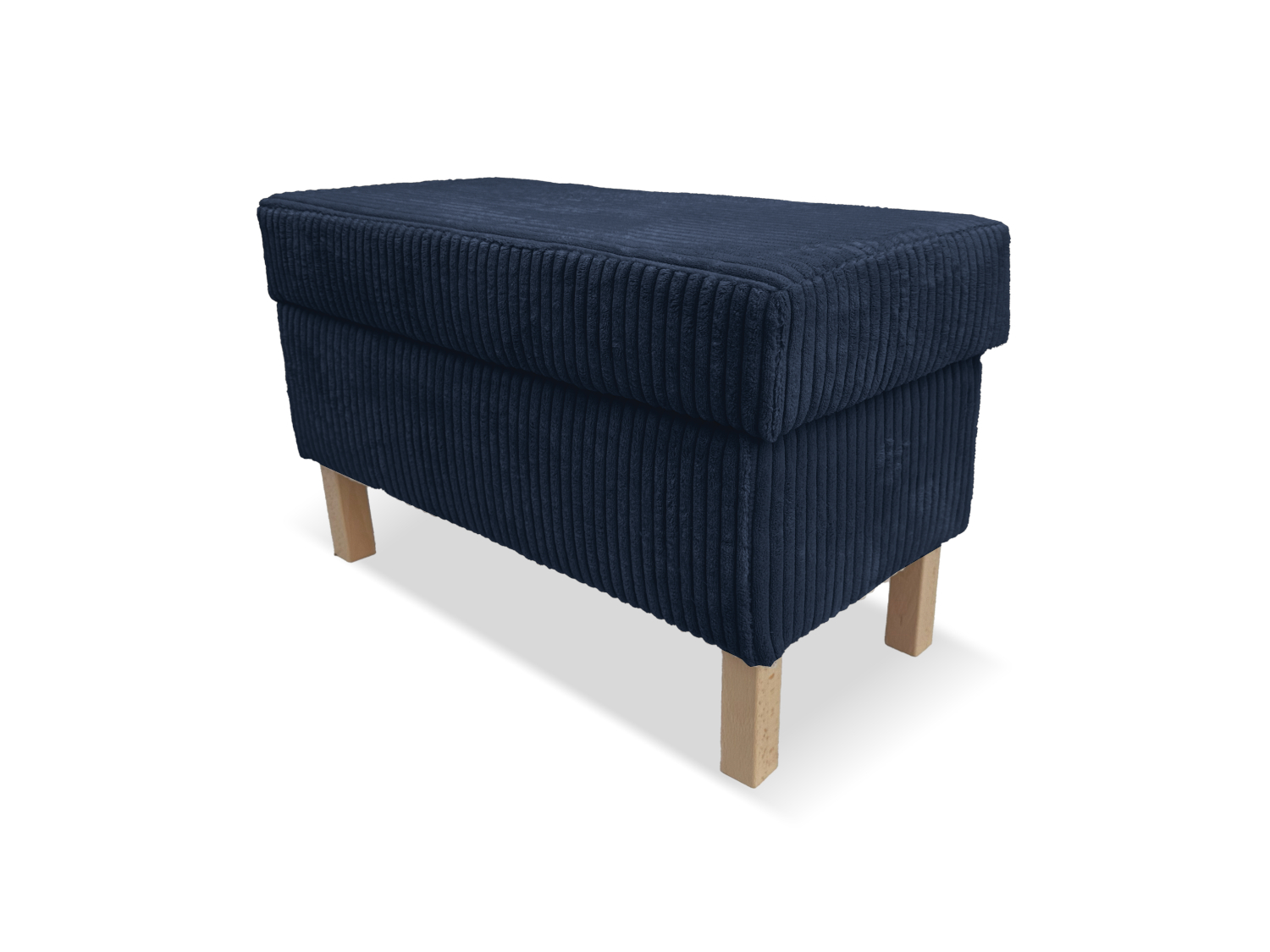 Taburet ELLA s úložným prostorem - manšestr - tmavěmodrý Taburetka ELLA – malá věc, velká změna! ELLA je jako šperk ve světě nábytku – malá, ale poutavá. Její forma je úsporná, ale promyšlená a každý detail hovoří jazykem současné elegance. Je to kus nábytku, který k udělání dojmu nepotřebuje zbytečné dekorace – potřebuje pouze kvalitu zpracování, promyšlený design a funkčnost, která překvapí. ELLA je perfektní tam, kde záleží na harmonii, řádu a stylu. PROVEDENÍ Rozměry: 60 × 28 × 42 cm – ideální do malých prostor, chodeb, k posteli nebo do obývacího pokoje. Měkký sedák s výškou 11 cm – pohodlný a příjemný na dotek. Vnitřní kontejner s výškou 19 cm – schová drobnosti, deky, knihy nebo cokoli, co chcete mít po ruce. Dřevěné nohy – dodávají nábytku lehkost a stabilitu a zároveň zdůrazňují elegantní charakter. Minimalistický tvar – taburetka, která doplní interiér, aniž by mu dominovala. K dispozici v mnoha barvách. Rozměry Šířka - 60 cm Hloubka - 28 cm Výška - 42 cm Rozměrová tolerance +/- 3 cm