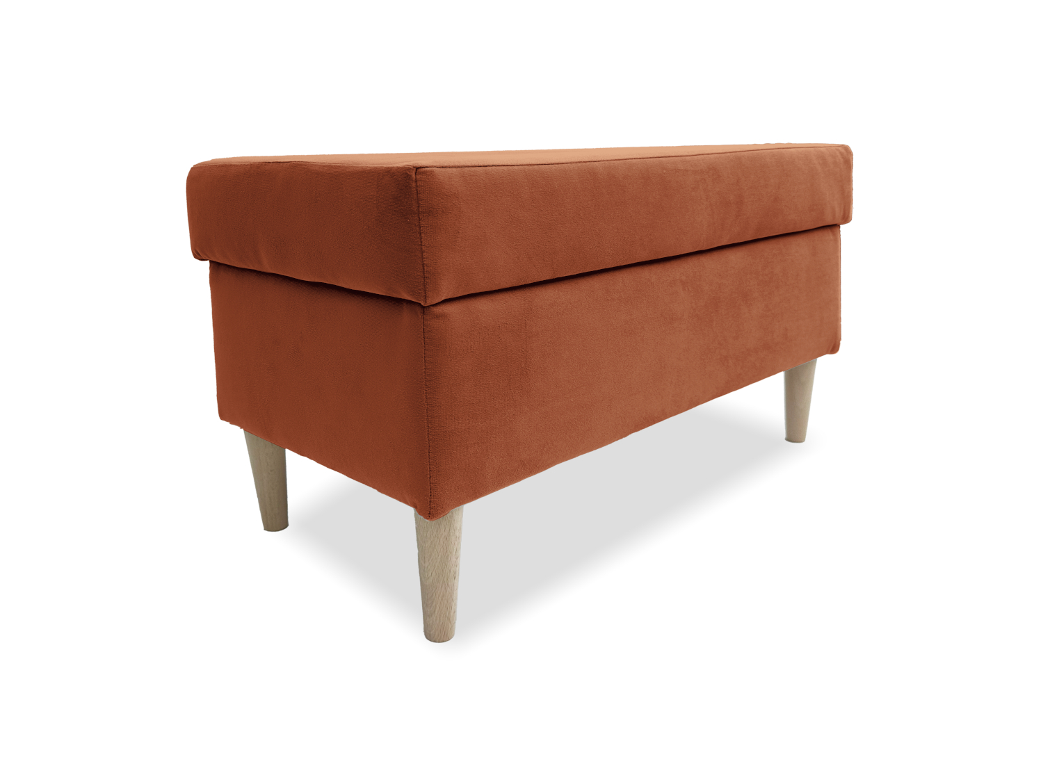 Taburet FINN s úložným prostorem - měděný Taburetka FINN – stylový minimalismus, který splní svůj účel! V jednoduchosti je síla – a taburetka FINN to dokonale dokazuje. Elegantní, kompaktní a překvapivě praktická. Není to jen sedátko – je to malý každodenní hrdina, který vám pomůže s eleganci uspořádat váš prostor. FINN se bude skvěle hodit do chodby, ložnice nebo obývacího pokoje – všude, kde záleží na pohodlí a dobrém designu. Sametová povrchová úprava a decentní dřevěné nohy mu dodávají lehkost a skrytá schránka z něj dělá víc než jen pěkný kus nábytku. PROVEDENÍ Rozměry: 60 × 28 × 42 cm – ideální do malých prostor, chodeb, k posteli nebo do obývacího pokoje. Měkké sedátko s výškou 11 cm – pohodlné a příjemné na dotek. Vnitřní schránka s výškou 19 cm – schovejte drobnosti, deky, knihy nebo cokoli, co chcete mít po ruce. Dřevěné nohy – dodávají nábytku lehkost a stabilitu a zároveň zdůrazňují elegantní charakter. Minimalistický tvar – taburet, který doplní interiér, aniž by mu dominoval. K dispozici v mnoha barvách. ROZMĚRY Šířka - 60 cm Hloubka - 28 cm Výška - 42 cm Rozměrová tolerance: +/- 3 cm