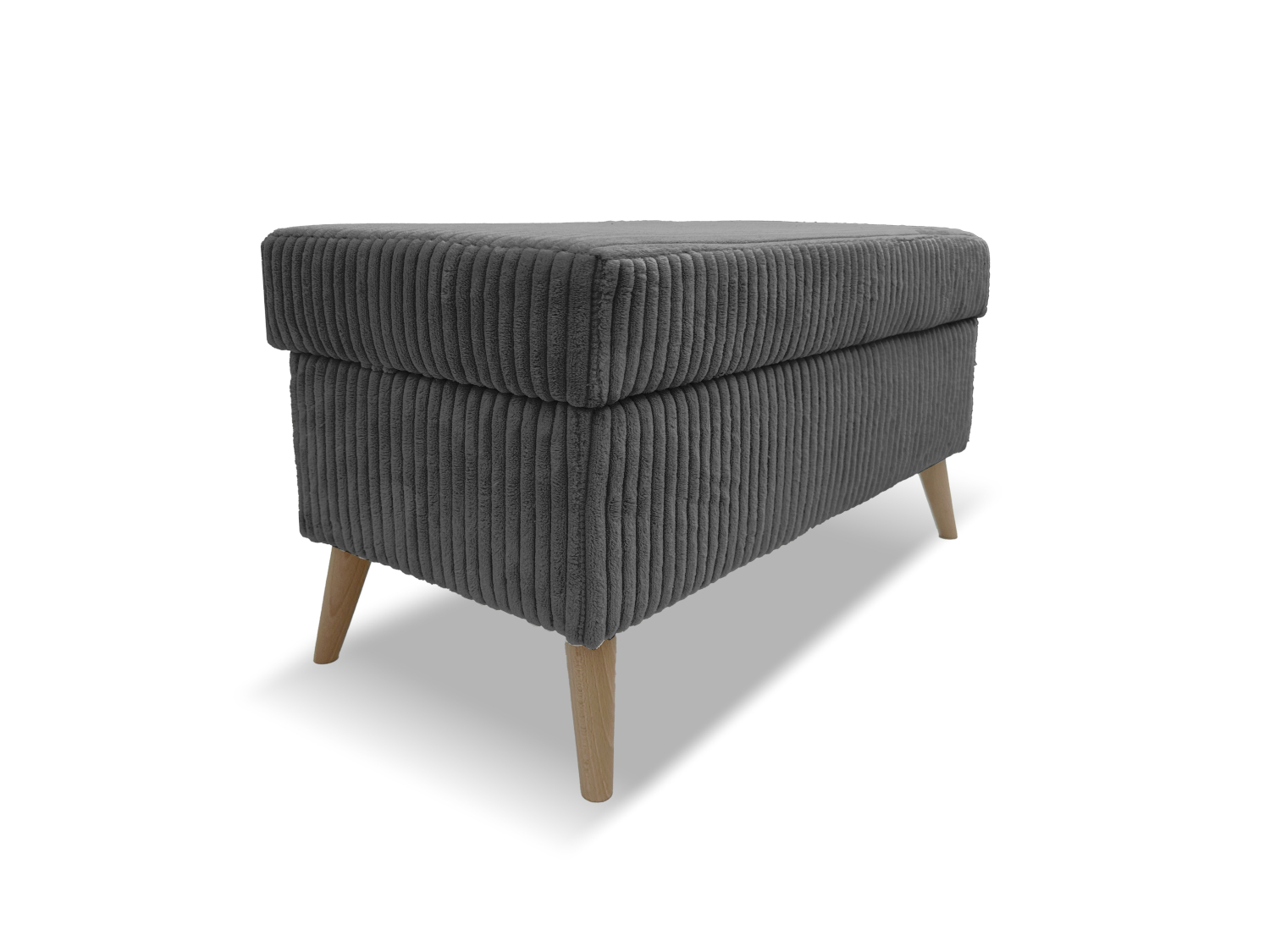 Taburet TESS s úložným prostorem - manšestr - grafitový Taburetka TESS – funkční forma v měkkém potahu Někdy méně je více – a přesně to taburetka TESS je. Jednoduchá forma, ale plná kouzla díky charakteristické struktuře manšestrové látky LINCOLN. Tento model zaujme nejen svým vzhledem, ale i svou praktičností – skvěle poslouží jako přídavné sezení, praktický úložný prostor a decentní dekorace v jednom. TESS je odpovědí na potřeby moderních interiérů – kompaktní, pohodlná a univerzální. Díky jemnému prošívání a pečlivému zpracování se hodí jak do minimalistických, tak i do útulnějších či eklektických interiérů. Ideální do obývacího pokoje, chodby, dětského pokoje a nebo i do domácí kanceláře. PROVEDENÍ Rozměry: 60 × 28 × 42 cm – ideální do malých prostor, chodeb, k posteli nebo do obývacího pokoje. Měkké sedátko s výškou 11 cm – pohodlné a příjemné na dotek. Vnitřní nádoba vysoká 19 cm – schovejte drobnosti, deky, knihy nebo cokoli, co chcete mít po ruce. Dřevěné nohy - dodávají nábytku lehkost a stabilitu a zároveň zdůrazňují elegantní charakter. Minimalistický tvar - puf, který doplní interiér, aniž by mu dominoval. K dispozici v mnoha barvách. Rozměry Šířka - 60 cm Hloubka - 28 cm Výška - 42 cm Tolerance rozměrů +/- 3 cm