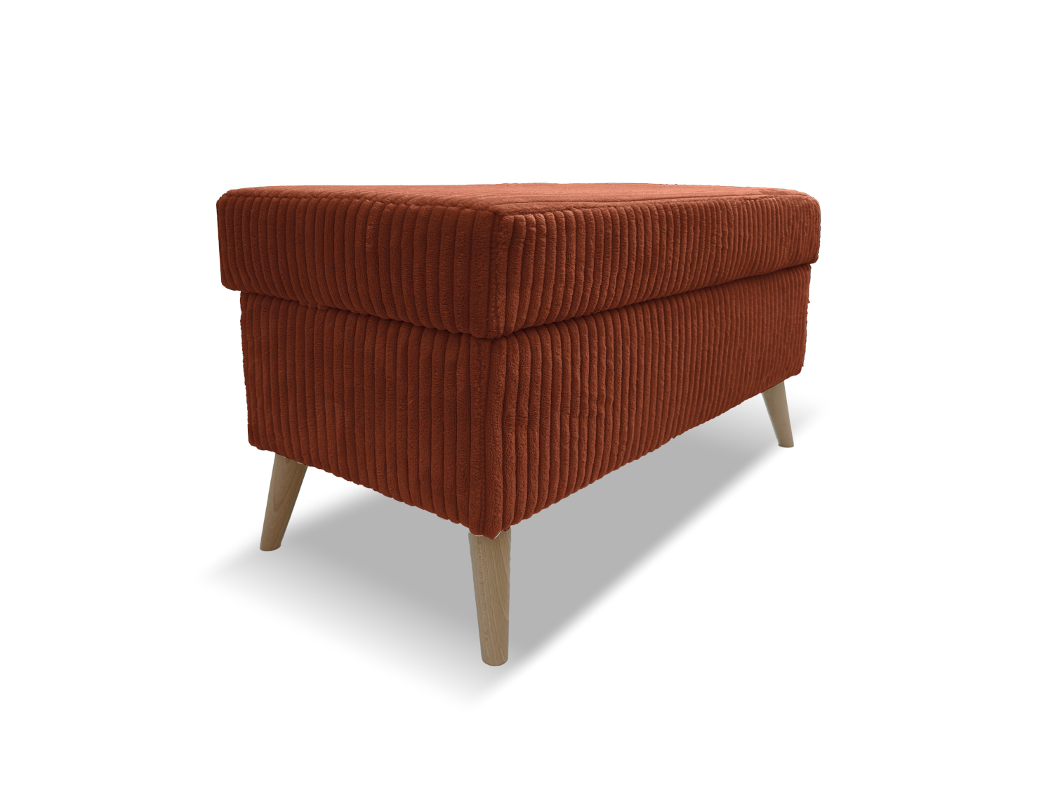 Taburet TESS s úložným prostorem - manšestr - oranžový Taburetka TESS – funkční forma v měkkém potahu Někdy méně je více – a přesně to taburetka TESS je. Jednoduchá forma, ale plná kouzla díky charakteristické struktuře manšestrové látky LINCOLN. Tento model zaujme nejen svým vzhledem, ale i svou praktičností – skvěle poslouží jako přídavné sezení, praktický úložný prostor a decentní dekorace v jednom. TESS je odpovědí na potřeby moderních interiérů – kompaktní, pohodlná a univerzální. Díky jemnému prošívání a pečlivému zpracování se hodí jak do minimalistických, tak i do útulnějších či eklektických interiérů. Ideální do obývacího pokoje, chodby, dětského pokoje a nebo i do domácí kanceláře. PROVEDENÍ Rozměry: 60 × 28 × 42 cm – ideální do malých prostor, chodeb, k posteli nebo do obývacího pokoje. Měkké sedátko s výškou 11 cm – pohodlné a příjemné na dotek. Vnitřní nádoba vysoká 19 cm – schovejte drobnosti, deky, knihy nebo cokoli, co chcete mít po ruce. Dřevěné nohy - dodávají nábytku lehkost a stabilitu a zároveň zdůrazňují elegantní charakter. Minimalistický tvar - puf, který doplní interiér, aniž by mu dominoval. K dispozici v mnoha barvách. Rozměry Šířka - 60 cm Hloubka - 28 cm Výška - 42 cm Tolerance rozměrů +/- 3 cm