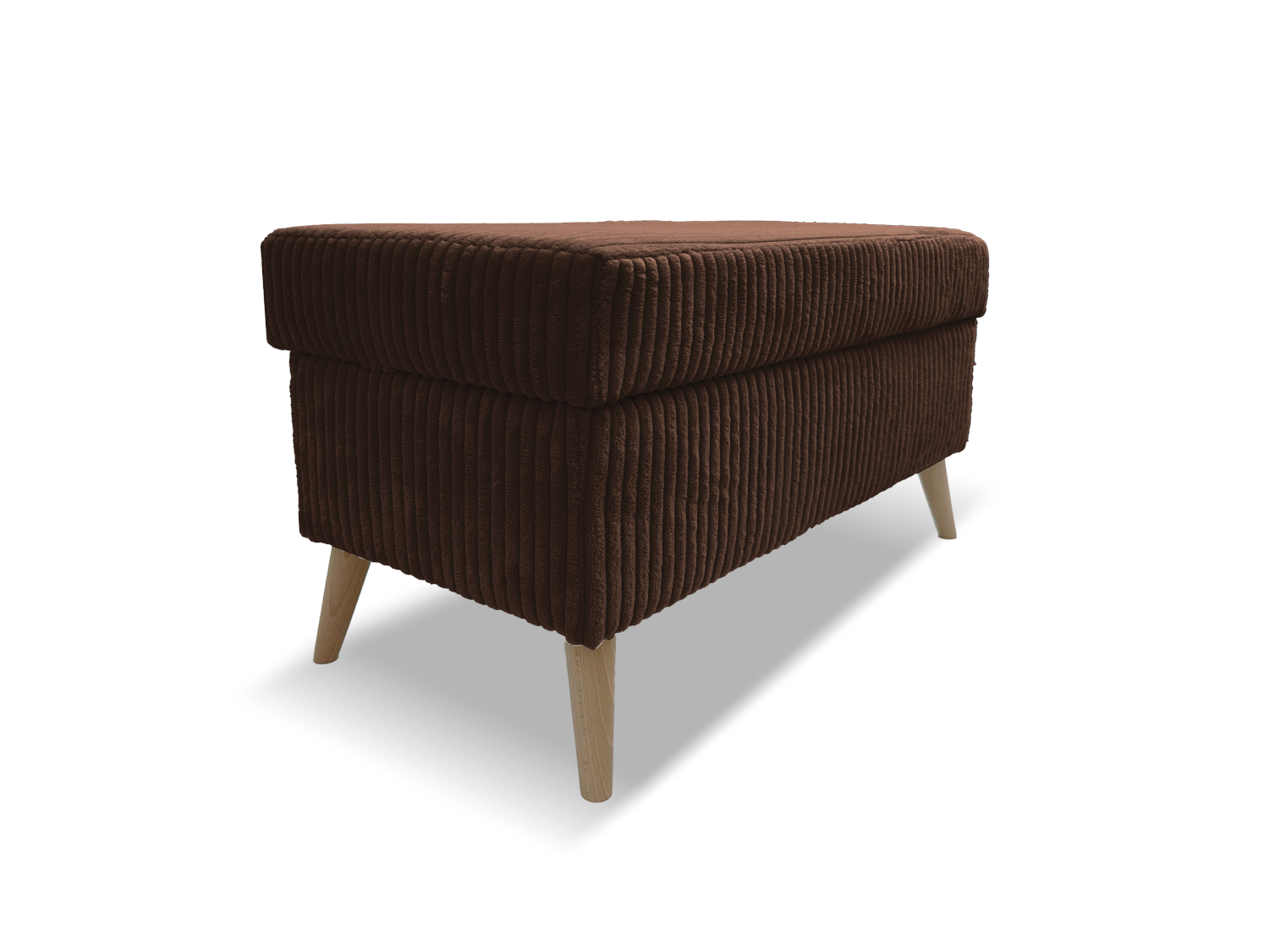 Taburet TESS s úložným prostorem - manšestr - tmavěhnědý Taburetka TESS – funkční forma v měkkém potahu Někdy méně je více – a přesně to taburetka TESS je. Jednoduchá forma, ale plná kouzla díky charakteristické struktuře manšestrové látky LINCOLN. Tento model zaujme nejen svým vzhledem, ale i svou praktičností – skvěle poslouží jako přídavné sezení, praktický úložný prostor a decentní dekorace v jednom. TESS je odpovědí na potřeby moderních interiérů – kompaktní, pohodlná a univerzální. Díky jemnému prošívání a pečlivému zpracování se hodí jak do minimalistických, tak i do útulnějších či eklektických interiérů. Ideální do obývacího pokoje, chodby, dětského pokoje a nebo i do domácí kanceláře. PROVEDENÍ Rozměry: 60 × 28 × 42 cm – ideální do malých prostor, chodeb, k posteli nebo do obývacího pokoje. Měkké sedátko s výškou 11 cm – pohodlné a příjemné na dotek. Vnitřní nádoba vysoká 19 cm – schovejte drobnosti, deky, knihy nebo cokoli, co chcete mít po ruce. Dřevěné nohy - dodávají nábytku lehkost a stabilitu a zároveň zdůrazňují elegantní charakter. Minimalistický tvar - puf, který doplní interiér, aniž by mu dominoval. K dispozici v mnoha barvách. Rozměry Šířka - 60 cm Hloubka - 28 cm Výška - 42 cm Tolerance rozměrů +/- 3 cm