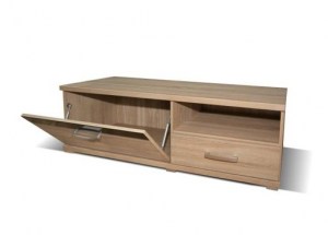 Televizní stolek P16 100cm Barva korpusu: Lancelot, Lišta: Bílá, Barva dvířek: Dub - sonoma