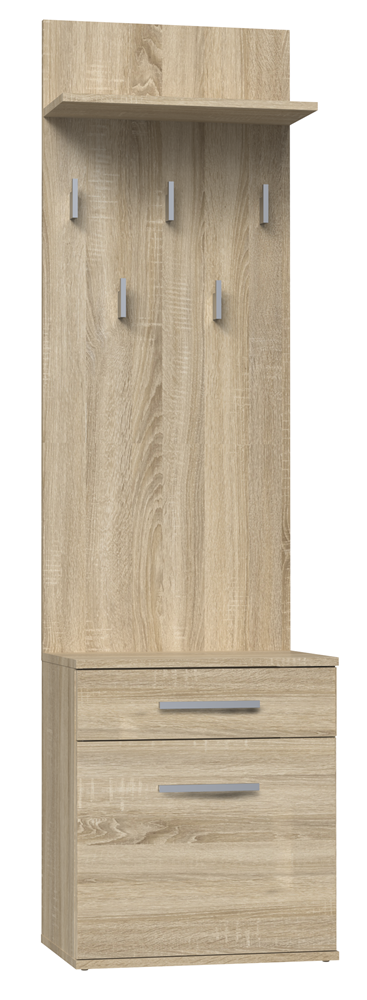 Předsíňová stěna P24 pravá Barva korpusu: Šedá, Lišta: Dub - sonoma, Barva dvířek: Šedá