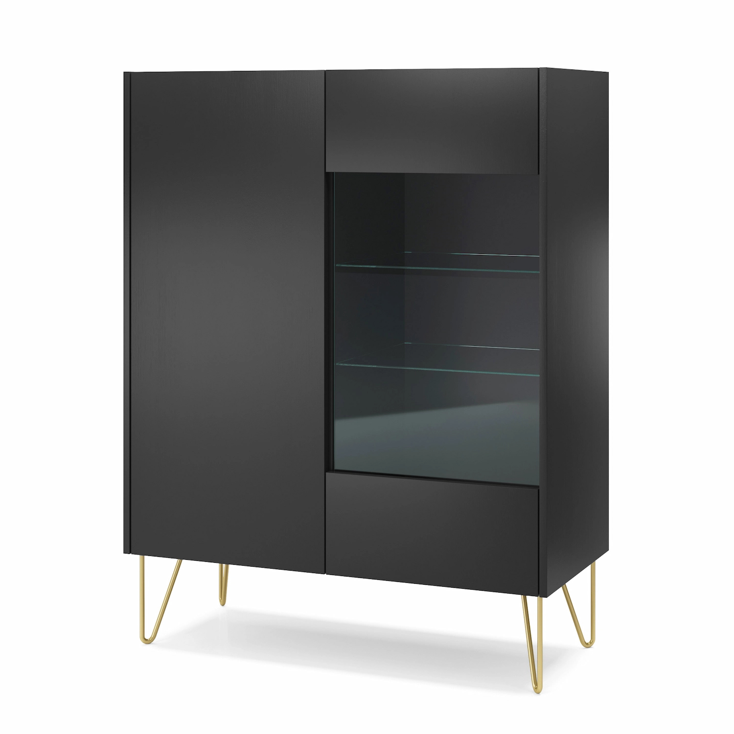 Elegantní kombinace černé a zlaté pro moderní interiér Nábytková sestava HARMONY přináší do vašeho obývacího pokoje sofistikovaný design s nádechem luxusu. Tmavá, téměř černá povrchová úprava s jemnou strukturou dřeva je elegantně doplněna lesklými zlatými nožičkami ve tvaru vlásenek, které dodávají nábytku lehkost a moderní styl. Tento kontrast barev a materiálů vytváří poutavý celek, který se stane dominantou každého prostoru. Funkčnost a styl s mramorovým akcentem Sestava HARMONY není jen o kráse, ale i o praktičnosti. Promyšlené úložné prostory v podobě komod a skříněk zajistí pořádek ve vašem domově, zatímco odolná deska s imitací černého mramoru na konferenčním stolku a vrchních plochách dodává sestavě exkluzivní vzhled a zároveň je snadno udržovatelná. HARMONY je ideální volbou pro ty, kteří hledají harmonické spojení moderního designu, vysoké funkčnosti a nadčasové elegance. PROVEDENÍ Oboustranně laminovaná deska tloušťky 16 mm Hrany dodatečně zakončené ABS dýhou MDF deska Pevné kovové nožky Bezúchytový systém push-to-open Odolná a pevná konstrukce Nábytek pro svépomocnou montáž, dodáván v rozloženém stavu s návodem ROZMĚRY Šířka - 97 cm Výška - 122 cm Hloubka - 37 cm Rozměrová tolerance +/- 3 cm.