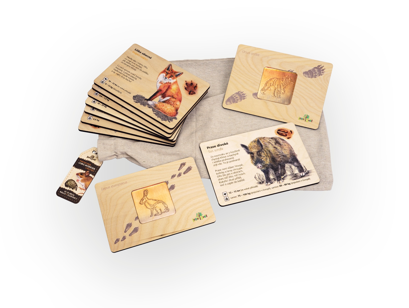 Kreativní a nápadité tvoření Frotáž je výtvarná technika, při níž se struktura nebo textura předmětu přenáší třením přes papír. Obvykle se k frotážování používá tužka, pastel, uhly nebo voskovky. Fotážování se skvěle kombinuje s dalšími výtvarnými a výukovými aktivitami. Rozvíjí smyslové vnímání, motoriku i kreativitu. Hravou formou seznamuje děti i dospělé s přírodou. Na každé kartě najdete věrnou ilustraci vybraného savce Dále základní míry, básničku a frotáž. Frotážová sada je komplexní učební pomůcka vhodná pro předškolní a školní výuku. Zábavnou a hravou formou seznamuje děti i dospělé s přírodou. Naše frotáže nesou ochranu průmyslového vzoru EUIPO. Frotáže z Lesního světa Balení obsahuje 12 dřevěných frotážových destiček. Dřevěnou destičku s návodem na frotážování a QR kódy. Rozměr destičky je 21x15 cm. Dodáváno s měděno-zinkovými nebo hliníkovými frotážovými destičkami. Ekologická výroba s certifikací PEFC. Zabaleno v přírodním látkovém pytlíku. České výrobky z Hradce Králové. Originální obrázky od českých ilustrátorů. Druhy zvířat: liška obecná, prase divoké, jelen evropský, zajíc polní, vlk obecný, kuna lesní, srnec obecný, medvěd hnědý, rys ostrovid, veverka obecná, ježek západní, myšice lesní. Jirka Novák , malíř a ilustrátor Tvoří převážně realistické kresby fauny a flóry. Ilustrátor učebních pomůcek, naučných tabulí a her s tématikou českých živočichů. Více o Jirkovi Jak na frotážování 1. Připravte si vše potřebné Budete potřebovat frotážovou destičku, čistý papír a měkkou tužku (ideálně grafitovou, alespoň HB nebo měkčí). 2. Umístěte destičku pod papír Frotážovou destičku umístěte tak, aby motiv byl v místě, kde ho chcete vykreslit. Ujistěte se, že se papír nepohybuje – můžete ho lehce přidržet rukou nebo přichytit páskou. 3. Začněte přejíždět tužkou Vezměte tužku do ruky pod mírným úhlem (šikmo) a jemně přejížděj po papíru. Nezajíždějte moc na jedno místo, spíš rovnoměrně klouzejte. 4. Dokončete obrázek Když máte celý motiv vykreslený, můžete ho ještě dozdobit, domalovat nebo zkusit jinou barvu. Každá frotáž je originál! Může se hodit Papírové bloky Nemáte po ruce prázdný papír na frotážování? Naše bloky jsou z ekologického papíru a navíc s krásnými ilustracemi. Dostupné ve velikostech A4, A5 i A6. Papírové bloky Dřevěná razítka Oblíbený doplňková, nebo navazujícíc aktivita k fotážování. Děti milují svět fantazie. S razítky snadno dotvoříte příběh na papíru i mimo něj. Razítka VšudyLEPKY Neobyčejné originální samolepky s motivy zvířat snadno doplní frotáže o nový prvek. VšudyLEPKU můžete opakovaně přemisťovat. VšudyLEPKY Aplikace Lesní svět Naučná aplikace zdarma ke stažení Destičky obsahují QR kódy Po načtení můžete přehrát zvuk zvířete Součástí je animace a krátké povídání Vyzkoušejte, co všechno umí * Aplikaci stahujte pouze z oficiálních obchodů Google Play nebo AppStore, kde je ověřená a dostupná vždy zdarma. Od jakékoliv jiné aplikace se Lesní svět distancuje a nenese žádnou zodpovědnost za její použití.