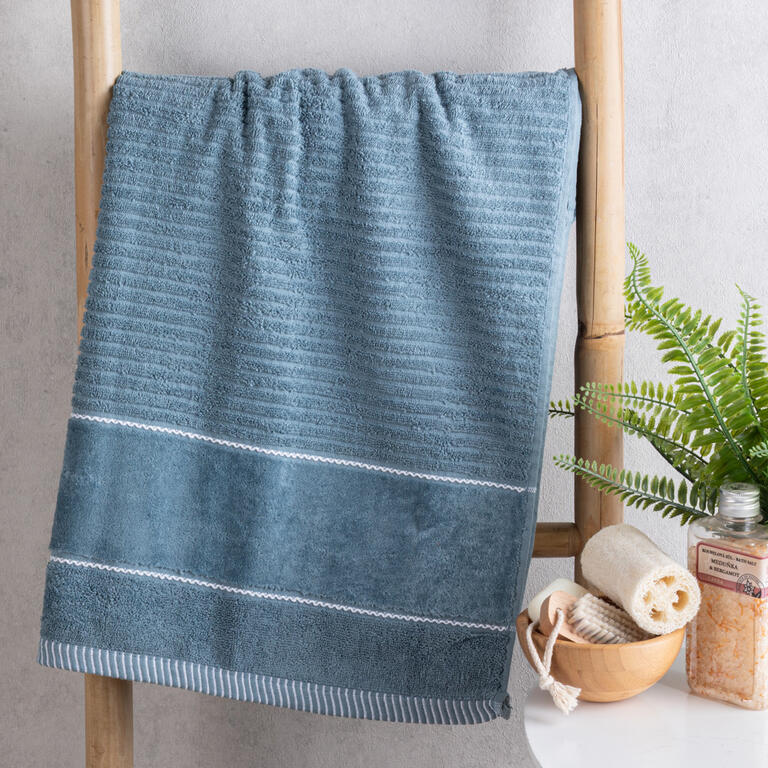 Bavlněná osuška z kolekce TEO v tlumeném modrošedém odstínu se střiženou bordurou z oblíbeného smyčkového froté je velmi příjemná na omak a ohleduplná k vaší pokožce. Vysoká gramáž dodává osušce výjimečnou měkkost a dlouhodobou životnost. Vyznačuje se výbornou savostí a antistatickými vlastnostmi. Certifikáty Öko-Tex Standard 100 A Öko-Tex Made in Green zaručují nulový obsah škodlivých látek i zdravé pracovní procesy při výrobě.