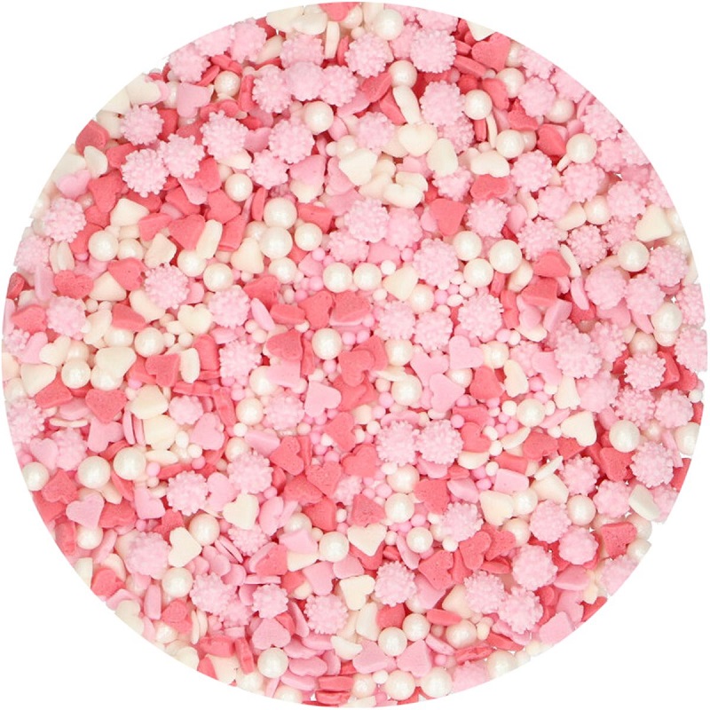 Cukrové zdobení je vhodné na jemné zdobení cukrářských výrobků. Složení: cukr, dextrosa, škrob (pšeničný, kukuřičný, rýžový), rýžová mouka, glukózový sirup, rostlinný olej a tuk (kokosový, řepkový), barviva: E120, E160a, kukuřičné otruby, koncentrát z červené řepy, Leštící látky: E901, E903,E904, Zahušťovadlo: E413, E414, aroma. Může obsahovat stopy arašídů, lepku, mléka, ořechů. Výživové hodnoty: Energetická hodnota 1676 KJ / 397 kcal; Tuky: 1,4 g z toho nasycené mastné kyseliny 0,6 g; Sacharidy: 95 g z toho cukry 83 g; Vláknina: 0 g; Bílkoviny: 0,3 g; Sůl: 0 g .