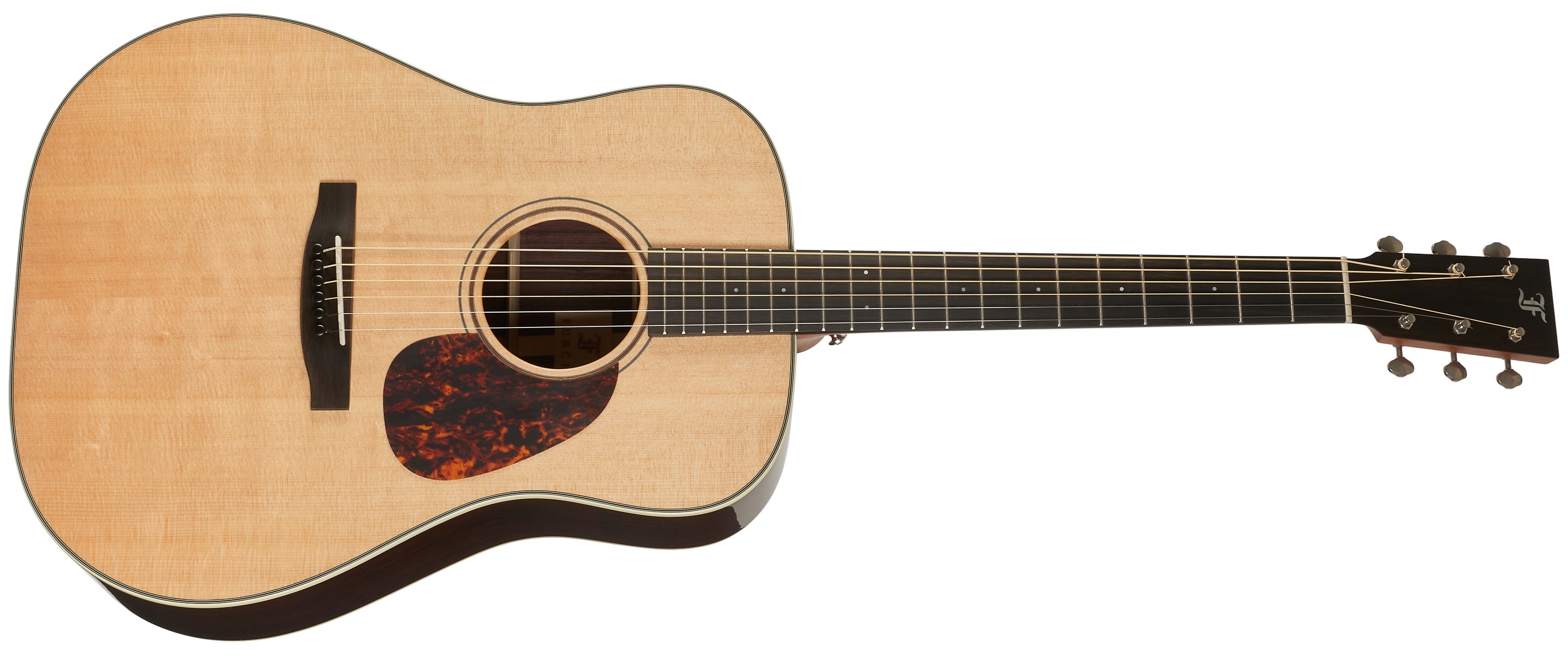 Akustická kytara Na přání zákazníka je kytaru možné osadit elektronikou firmy L.R. Baggs. Pro bližší informace o ceně a modelu elektroniky kontaktujte naší zákaznickou linku nebo specialisty na prodejně. Kytary z řady Furch Vintage jistě potěší milovníky tradičního kytarového designu. Vintage 1 D-SR CNR Active je populární model Dreadnought s objemnou konstrukcí a velkým dynamickým zvukem. Přední deska kytary je zhotovena ze smrku Sitka kvality AA, zadní deska a luby jsou vyrobeny z indického palisandru též