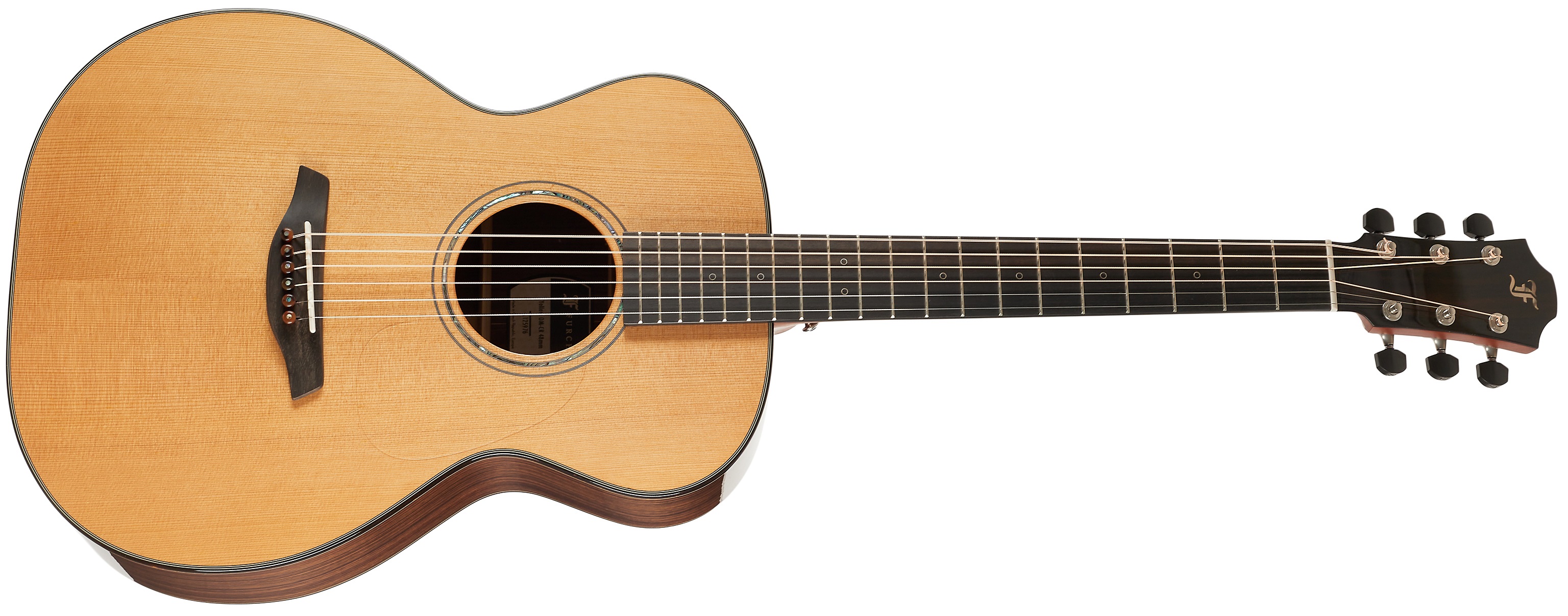 Akustická kytara Na přání zákazníka je kytaru možné osadit elektronikou firmy L.R. Baggs. Pro bližší informace o ceně a modelu elektroniky kontaktujte naší zákaznickou linku nebo specialisty na prodejně. Akustické kytary Furch z řady Yellow jsou dostupné s přední deskou ze smrku Sitka i západního červeného cedru, a nabízejí tak dvě odlišné zvukové charakteristiky. Zatímco smrk Sitka s sebou přináší silný a dynamický tón, cedr je charakteristický spíše vyváženým a bohatým zvukem. Model Yellow OM-CR 48mm s ko