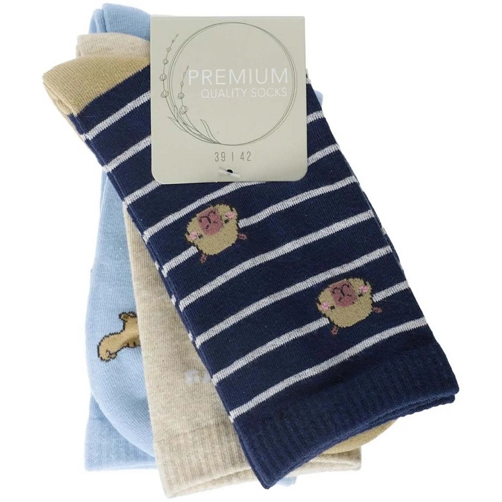Ponožky dámské 34281 3 páry mix barev a motivů Dopřejte svým nohám pohodlí i hravý styl v jednom. Dámské ponožky v praktickém balení 3 ks zaujmou jemnými barvami, veselými motivy a příjemným materiálem s vysokým podílem bavlny. Skvěle se hodí na běžné nošení doma, do práce i na volný čas, kdy chcete outfit doplnit o nenápadný, ale milý detail. Díky kombinaci bavlny, polyesteru a elastanu jsou ponožky pohodlné, prodyšné a dobře se přizpůsobí chodidlu. Příjemně se nosí po celý den a zároveň si drží svůj tvar. Výhodné balení tří párů navíc zajistí, že budete mít svůj oblíbený kousek vždy po ruce. Vlastnosti: balení obsahuje 3 páry ponožekdámské provedenípříjemný a pohodlný materiál s vysokým podílem bavlnyjemné barvy a hravé vzory pro stylový vzhledvhodné na každodenní nošení Materiál: 70 % bavlna28 % polyester2 % elastan Dostupné velikosti: 35–3839–42 Pokyny k údržbě: praní na 30 °C – běžný prací cyklusnebělit