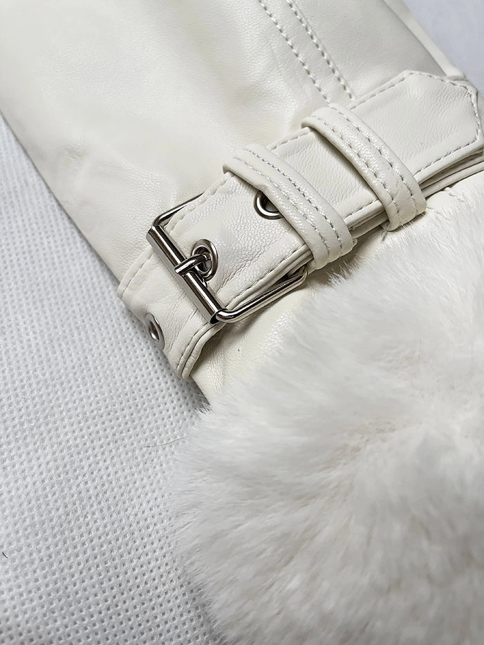 Věnujte prosím pozornost při výběru velikosti dle velikostní tabulky uvedené níže. Velikosti neodpovídají běžně nošené konfekci. Bunda ramoneska s kapucí Bunda má jednoduchý střih, má tenkou kožešinovou podšívku, pásek pro zavazování, dvě kapsy bez zapínání a zapíná se stříbrným zipem. Model má kapuci, kterou není možné odepnout. Bundu zdobí kožešiny, které není možné odepnout. Rukávy jsou lehce zateplené syntetickou péřovou výplní. Model má délku k bokům. Složení: vrchní vrstva - 100 % PU, podšívka - 100 % polyester.