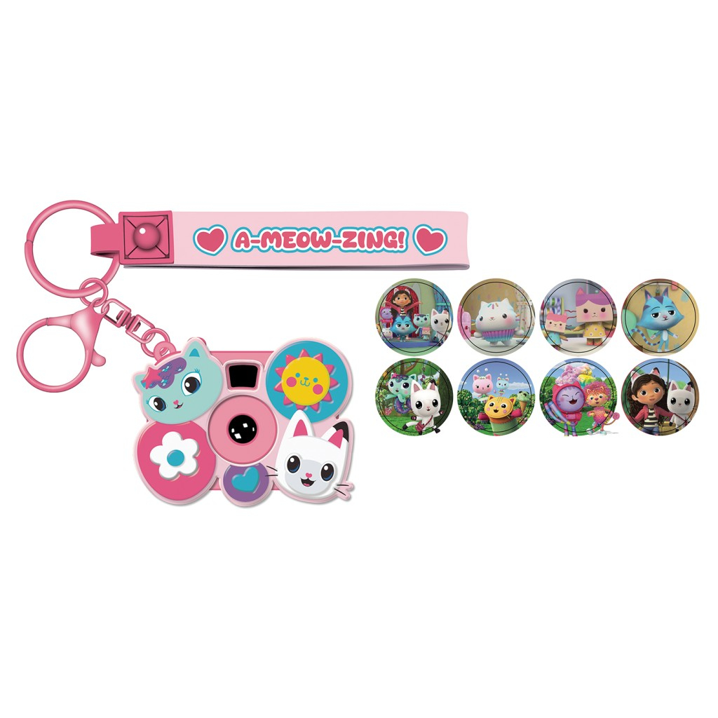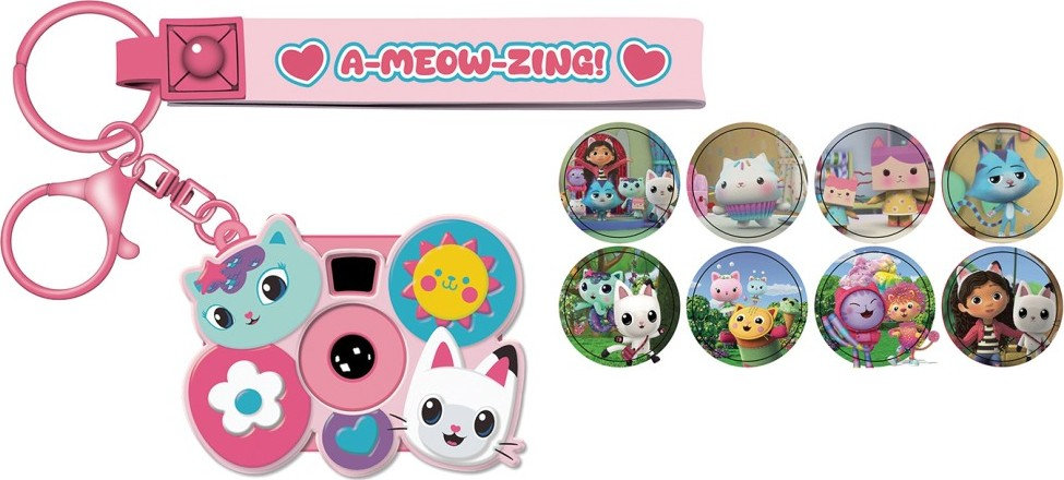 Veselá projektorová klíčenka s motivem z Gabby’s Dollhouse – ideální do batůžku nebo jako malý dárek.