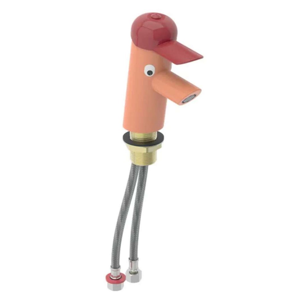 Umyvadlová armatura Geberit Bambini, 1-pákový směšovač k odběru pitné vody vhodné do dětských zařízení pro montáž do umyvadla nebo panelů s umyvadlem k osazení do hracích a mycích ploch Bambini pro připojení přívodu studené i teplé vody Vlastnosti barva: karmínově červená, oranžová design vhodný pro děti skupina armatur I podle DIN 4109 páková baterie omezení průtoku usměrňovačem proudu vody se zabudovaným zpětným ventilem rukojeť z ABS provozní tlak 100–1000 kPa maximální zkušební tlak vody 1600 kPa maximální zkušební tlak vzduchu / inertního plynu 300 kPa maximální teplota vody: 65 °C maximální teplota vody, krátkodobá: 90 °C průtok při tlaku 3 bar: 5.7 l/min materiál: mosaz Obsah dodávky klíč pro usměrňovač proudu vody klíč pro páku upevňovací materiál Aby se zabránilo opaření, doporučuje se použití minitermostatu k umyvadlovým armaturám Geberit Bambini.