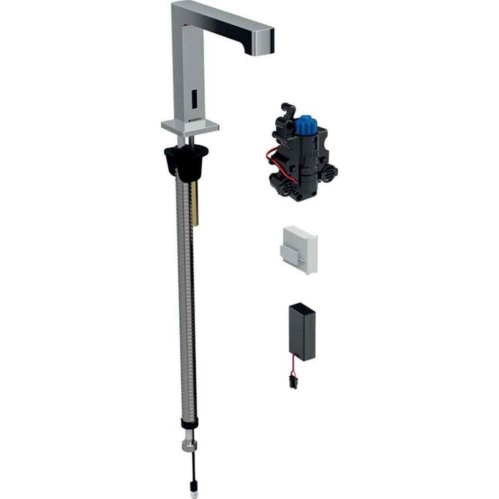 Elektronická umyvadlová baterie s termostatickým směšovačem, pro funkční box pod omítku Účel použití k odběru pitné vody pro veřejný a poloveřejný sektor k montáži do instalačních prvků Geberit pro umyvadlo nástěnná armatura s funkčním boxem pod omítku pro připojení studené a teplé vody (jen u provedení se směšovačem) pro připojení studené a smíchané vody (jen u provedení bez směšovače) pro použití s nerezovými dřezy provedení se směšovačem není určeno pro průtokový ohřívač Vlastnosti napájení z baterie skupina armatur I podle DIN 4109 automatické spuštění vody infračervené čidlo pro zaznamenání uživatele infračervený senzor samonastavitelný systém antivandal - odolný proti vandalům omezení průtoku usměrňovačem proudu vody nastavení teploty přes směšovač (pouze u provedení se směšovačem) voda nastavitelná jako ne pouze teplá nebo ne pouze studená (pouze u provedení se směšovačem) ochrana proti opaření omezením teploty na 42°C (pouze u modelu s termostatickým směšovačem) možnost tepelné dezinfekce dle DVGW W 551 baterie stačí na 200 000 spuštění výstraha v případě slabé baterie ekonomický režim provozu nastavitelný úspora vody díky dvouproudové snímací technice s rychlou reakcí funkce je možné servisním dálkovým ovládáním nastavit a dotazovat program úspora vody nastavitelný program intervalu propláchnutí nastavitelný trvalé propláchnutí individuálně nastavitelné ovládání spouštění deaktivovatelné pomocí ovládání pro údržbu Geberit různé funkce ručně nastavitelné se zabudovaným zpětným ventilem funkční jednotka se zabudovanými košíkovými filtry Technické údaje materiál pochromovaná mosaz / plast výška baterie 161 mm komfortní zóna 128 mm typ baterie: Alkalická baterie (1,5 V AA) teplota vody - rozsah nastavení s termostatickým směšovačem 20-42 °C druh ochrany: IPX4 maximální teplota vody: 60 °C provozní napětí: 3 V DC maximální teplota vody krátkodobá: 90 °C provozní tlak: 50-1000 kPa průtok při tlaku 3 bar: 5 l/min výpočtový průtok 0,07 l/s doporučený provozní tlak s termostatickým směšovačem 50-500 kPa minimální přetlak pro výpočtový průtok 50 kPa rozdíl tlaku studená/teplá voda: ≤ 150 kPa interval proplachu, rozsah nastavení 1-168 h maximální zkušební tlak vody 1600 kPa interval spláchnutí, nastavení ve výrobě: 24 h maximální zkušební tlak vzduchu / inertního plynu: 300 kPa interval proplachu, rozsah nastavení 5-200 s teplota okolí 1-40 °C interval spláchnutí, nastavení ve výrobě 5 s teplota skladování -20 - +70 °C Obsah dodávky umyvadlová baterie s infračerveným senzorem a hadicí pro přívod vod řídicí elektronika funkční jednotka pouzdro pro baterii 2 alkalické manganové baterie typu AA, 1,5 V klíč pro usměrňovač proudu vody upevňovací materiál Prvek Geberit pro umyvadlo a krycí deska nejsou součástí dodávky.