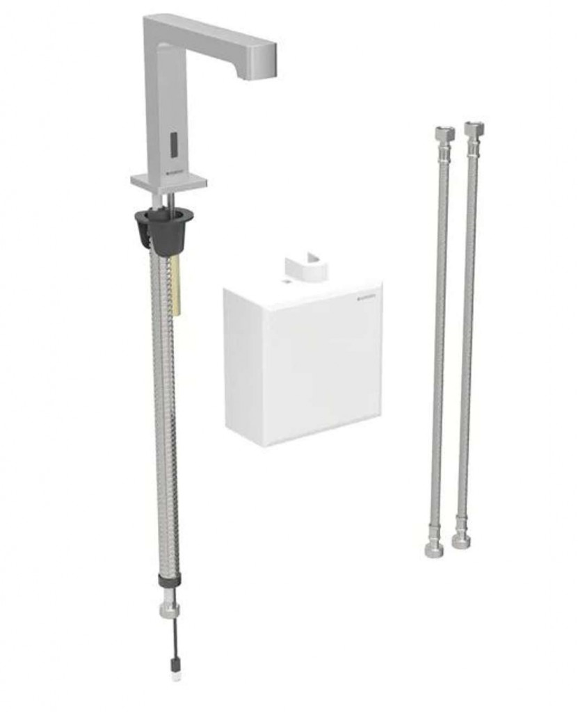 Elektronická umyvadlová armatura, pro funkční box na omítku Barva kartáčovaná nerez Materiál: mosaz pochromovaná/plast K odběru pitné vody Pro veřejný a poloveřejný sektor Pro montáž do umyvadla nebo panelů s umyvadlem Pro připojení studené a teplé vody / studené a smíchané vody Pro použití s nerezovými dřezy Nanesený povrch easy-to-clean Pro průtok > 3 l/min Provedení se směšovačem není určeno pro průtokový ohřívač Skupina armatur I podle DIN 4109 Automatické spuštění vody Samonastavitelný infračervené čidlo pro zaznamenání uživatele Odolný proti vandalům Omezení průtoku usměrňovačem proudu vody Nastavení teploty přes směšovač Voda nastavitelná jako ne pouze teplá nebo ne pouze studená Napájení elektrickým proudem z generátoru a akumulátoru Výstraha při nízkém stavu nabití akumulátoru Ekonomický režim provozu nastavitelný Úspora vody díky dvouproudové snímací technice s rychlou reakcí Funkce je možné servisním dálkovým ovládáním nastavit a dotazovat Program úspora vody nastavitelný Program intervalu propláchnutí nastavitelný Trvalé propláchnutí individuálně nastavitelné Ovládání spouštění deaktivovatelné pomocí ovládání pro údržbu Geberit Různé funkce ručně nastavitelné Se zabudovaným zpětným ventilem Funkční jednotka se zabudovanými košíkovými filtry Technické údaje Druh ochrany: IPX4 Provozní napětí: 3,2 V DC Provozní tlak: 200-1000 kPa Rozdíl tlaku studená/teplá voda: ≤ 150 kPa Maximální zkušební tlak vody: 1600 kPa Maximální zkušební tlak vzduchu/inertního plynu: 300 kPa Teplota okolí: 1–40 °C Teplota skladování: -20 – +70 °C Maximální teplota vody: 60 °C Maximální teplota vody, krátkodobá: 90 °C Průtok při tlaku 3 bar: 5 l/min Výpočtový průtok: 0.07 l/s Minimální přetlak pro výpočtový průtok: 200 kPa Interval proplachu, rozsah nastavení: 1-168 h Interval spláchnutí, nastavení ve výrobě: 24 h Interval proplachu, rozsah nastavení: 5-200 s Interval spláchnutí, nastavení ve výrobě: 5 s Délka výtoku: 195 mm Výška baterie: 161 mm Komfortní zóna: 128 mm Obsah dodávky Umyvadlová armatura s infračerveným senzorem a hadicí pro přívod vody Funkční box na omítku s řídicí elektronikou, funkční jednotkou a akumulátorem pro provoz generátoru Pancéřové hadičky 3/8" Klíč pro usměrňovač proudu vody Upevňovací materiál