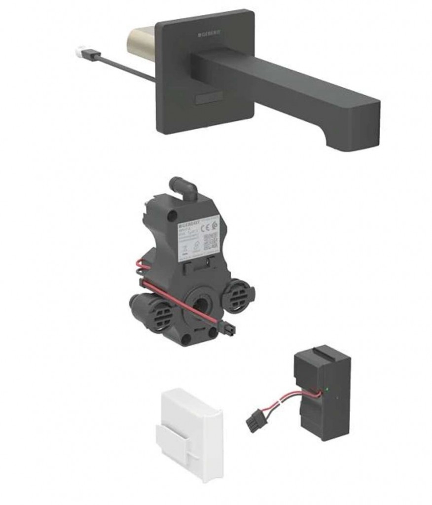 Elektronická umyvadlová armatura Brenta se směšovačem, pro funkční box pod omítku Barva matná černá Materiál mosaz pochromovaná/plast K odběru pitné vody Pro veřejný a poloveřejný sektor K montáži do instalačních prvků Geberit pro umyvadlo, nástěnná armatura s funkčním boxem pod omítku Pro připojení studené a teplé vody Pro použití s nerezovými dřezy Provedení se směšovačem není určeno pro průtokový ohřívač Pro tloušťky opláštění 10 – 50 mm Skupina armatur I podle DIN 4109 Automatické spuštění vody Samonastavitelné infračervené čidlo pro zaznamenání uživatele Odolný proti vandalům Nanesená vrstva easy-to-clean Omezení průtoku usměrňovačem proudu vody Nastavení teploty přes směšovač Napájení pomocí síťového zdroje Ekonomický režim provozu nastavitelný Úspora vody díky dvouproudové snímací technice s rychlou reakcí Funkce je možné servisním dálkovým ovládáním nastavit a dotazovat Program úspora vody nastavitelný Program intervalu propláchnutí nastavitelný Trvalé propláchnutí individuálně nastavitelné Ovládání spouštění deaktivovatelné pomocí ovládání pro údržbu Geberit Různé funkce ručně nastavitelné Se zabudovaným zpětným ventilem Funkční jednotka se zabudovanými košíkovými filtry Technické údaje Druh ochrany: IPX4 Jmenovité napětí: 110 - 240 V AC Síťová frekvence: 50 - 60 Hz Provozní napětí: 4,5 V DC Příkon: 0,1 W Provozní tlak: 50 - 1000 kPa Rozdíl tlaku studená/teplá voda: ≤ 150 kPa Maximální zkušební tlak vody: 1 600 kPa Maximální zkušební tlak vzduchu / inertního plynu: 300 kPa Teplota okolí: 1 – 40 °C Teplota skladování: -20 – +70 °C Maximální teplota vody: 60 °C Maximální teplota vody, krátkodobá: 90 °C Průtok při tlaku 3 bar: 5 l/min Výpočtový průtok: 0,07 l/s Minimální přetlak pro výpočtový průtok: 50 kPa Interval proplachu, rozsah nastavení: 1 - 168 h Interval spláchnutí, nastavení ve výrobě: 24 h Interval proplachu, rozsah nastavení: 5 - 200 s Interval spláchnutí, nastavení ve výrobě: 5 s Délka výtoku: 186 mm Obsah dodávky Umyvadlová armatura Infračervený senzor s připojovacím kabelem Řídicí elektronika Funkční jednotka Síťový zdroj Klíč pro usměrňovač proudu vody Upevňovací materiál Ilustrační foto