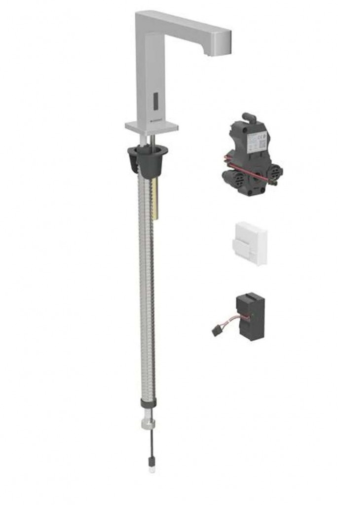 Elektronická umyvadlová armatura Brenta se směšovačem, pro funkční box pod omítku Barva kartáčovaná nerez Materiál mosaz pochromovaná/plast K odběru pitné vody Pro veřejný a poloveřejný sektor Pro montáž do umyvadla nebo panelů s umyvadlem K montáži do instalačních prvků Geberit pro umyvadlo, stojánková armatura s funkčním boxem pod omítku K montáži do souprav pro hrubou montáž k umyvadlovým armaturám Geberit, stojánkové, s funkčním boxem pod omítku Pro připojení studené a teplé vody Pro použití s nerezovými dřezy Provedení se směšovačem není určeno pro průtokový ohřívač Skupina armatur I podle DIN 4109 Automatické spuštění vody Samonastavitelné infračervené čidlo pro zaznamenání uživatele Odolný proti vandalům Nanesená vrstva easy-to-clean Omezení průtoku usměrňovačem proudu vody Nastavení teploty přes směšovač Voda nastavitelná jako ne pouze teplá nebo ne pouze studená Napájení pomocí síťového zdroje Ekonomický režim provozu nastavitelný Úspora vody díky dvouproudové snímací technice s rychlou reakcí Funkce je možné servisním dálkovým ovládáním nastavit a dotazovat Program úspora vody nastavitelný Program intervalu propláchnutí nastavitelný Trvalé propláchnutí individuálně nastavitelné Ovládání spouštění deaktivovatelné pomocí ovládání pro údržbu Geberit Různé funkce ručně nastavitelné Se zabudovaným zpětným ventilem Funkční jednotka se zabudovanými košíkovými filtry Technické údaje Druh ochrany: IPX4 Jmenovité napětí: 110 - 240 V AC Síťová frekvence: 50 - 60 Hz Provozní napětí: 4,5 V DC Příkon: 0,1 W Provozní tlak: 50 - 1000 kPa Rozdíl tlaku studená/teplá voda: ≤ 150 kPa Maximální zkušební tlak vody: 1 600 kPa Maximální zkušební tlak vzduchu/inertního plynu: 300 kPa Teplota okolí: 1 – 40 °C Teplota skladování: -20 – +70 °C Maximální teplota vody: 60 °C Maximální teplota vody, krátkodobá: 90 °C Průtok při tlaku 3 bar: 5 l/min Výpočtový průtok: 0,07 l/s Minimální přetlak pro výpočtový průtok: 50 kPa Interval proplachu, rozsah nastavení: 1 - 168 h Interval spláchnutí, nastavení ve výrobě: 24 h Interval proplachu, rozsah nastavení: 5 - 200 s Interval spláchnutí, nastavení ve výrobě: 5 s Délka výtoku: 195 mm Výška baterie: 161 mm Komfortní zóna: 128 mm Obsah dodávky Umyvadlová armatura s infračerveným senzorem a hadicí pro přívod vody Řídicí elektronika Funkční jednotka Síťový zdroj Klíč pro usměrňovač proudu vody Upevňovací materiál Ilustrační foto
