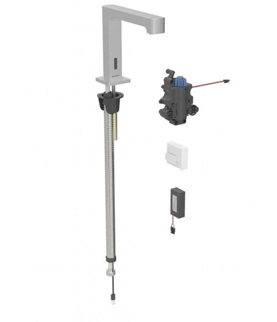 Elektronická umyvadlová baterie s termostatickým směšovačem, pro funkční box pod omítku barva kartáčovaná nerez materiál pochromovaná mosaz / plast k odběru pitné vody pro veřejný a poloveřejný sektor k montáži do instalačních prvků Geberit pro umyvadlo nástěnná armatura s funkčním boxem pod omítku pro připojení studené a teplé vody pro použití s nerezovými dřezy nanesená vrstva easy-to-clean provedení se směšovačem není určeno pro průtokový ohřívač napájení z baterie skupina armatur I podle DIN 4109 automatické spuštění vody samonastavitelné infračervené čidlo pro zaznamenání uživatele systém antivandal - odolný proti vandalům omezení průtoku usměrňovačem proudu vody nastavení teploty přes směšovač voda nastavitelná jako ne pouze teplá nebo ne pouze studená ochrana proti opaření omezením teploty na 42°C možnost tepelné dezinfekce dle DVGW W 551 výstraha v případě slabé baterie ekonomický režim provozu nastavitelný úspora vody díky dvouproudové snímací technice s rychlou reakcí funkce je možné servisním dálkovým ovládáním nastavit a dotazovat program úspora vody nastavitelný program intervalu propláchnutí nastavitelný trvalé propláchnutí individuálně nastavitelné ovládání spouštění deaktivovatelné pomocí ovládání pro údržbu Geberit různé funkce ručně nastavitelné se zabudovaným zpětným ventilem funkční jednotka se zabudovanými košíkovými filtry Technické údaje výška baterie 161 mm komfortní zóna 128 mm typ baterie: Alkalická baterie (1,5 V AA) teplota vody - rozsah nastavení s termostatickým směšovačem 20 - 42 °C druh ochrany: IPX4 maximální teplota vody: 60 °C provozní napětí: 3 V DC maximální teplota vody krátkodobá: 90 °C provozní tlak: 50 - 1000 kPa průtok při tlaku 3 bar: 5 l/min výpočtový průtok 0,07 l/s doporučený provozní tlak s termostatickým směšovačem 50 - 500 kPa minimální přetlak pro výpočtový průtok 50 kPa rozdíl tlaku studená/teplá voda: ≤ 150 kPa interval proplachu, rozsah nastavení 1 - 168 h maximální zkušební tlak vody 1 600 kPa interval spláchnutí, nastavení ve výrobě: 24 h maximální zkušební tlak vzduchu / inertního plynu: 300 kPa interval proplachu, rozsah nastavení 5-200 s teplota okolí 1 - 40 °C interval spláchnutí, nastavení ve výrobě 5 s teplota skladování -20 - +70 °C Obsah dodávky umyvadlová baterie s infračerveným senzorem a hadicí pro přívod vod řídicí elektronika funkční jednotka pouzdro pro baterii 2 alkalické manganové baterie typu AA, 1,5 V klíč pro usměrňovač proudu vody upevňovací materiál Prvek Geberit pro umyvadlo a krycí deska nejsou součástí dodávky.
