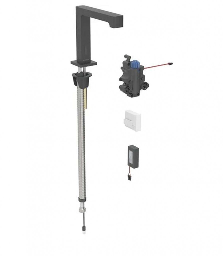 Elektronická umyvadlová baterie s termostatickým směšovačem, pro funkční box pod omítku barva matná černá materiál pochromovaná mosaz / plast k odběru pitné vody pro veřejný a poloveřejný sektor k montáži do instalačních prvků Geberit pro umyvadlo nástěnná armatura s funkčním boxem pod omítku pro připojení studené a teplé vody pro použití s nerezovými dřezy nanesená vrstva easy-to-clean provedení se směšovačem není určeno pro průtokový ohřívač napájení z baterie skupina armatur I podle DIN 4109 automatické spuštění vody samonastavitelné infračervené čidlo pro zaznamenání uživatele systém antivandal - odolný proti vandalům omezení průtoku usměrňovačem proudu vody nastavení teploty přes směšovač voda nastavitelná jako ne pouze teplá nebo ne pouze studená ochrana proti opaření omezením teploty na 42°C možnost tepelné dezinfekce dle DVGW W 551 výstraha v případě slabé baterie ekonomický režim provozu nastavitelný úspora vody díky dvouproudové snímací technice s rychlou reakcí funkce je možné servisním dálkovým ovládáním nastavit a dotazovat program úspora vody nastavitelný program intervalu propláchnutí nastavitelný trvalé propláchnutí individuálně nastavitelné ovládání spouštění deaktivovatelné pomocí ovládání pro údržbu Geberit různé funkce ručně nastavitelné se zabudovaným zpětným ventilem funkční jednotka se zabudovanými košíkovými filtry Technické údaje výška baterie 161 mm komfortní zóna 128 mm délka výtoku: 195 mm typ baterie: Alkalická baterie (1,5 V AA) teplota vody - rozsah nastavení s termostatickým směšovačem 20 - 42 °C druh ochrany: IPX4 maximální teplota vody: 60 °C provozní napětí: 3 V DC maximální teplota vody krátkodobá: 90 °C provozní tlak: 50 - 1000 kPa průtok při tlaku 3 bar: 5 l/min výpočtový průtok 0,07 l/s doporučený provozní tlak s termostatickým směšovačem 50 - 500 kPa minimální přetlak pro výpočtový průtok 50 kPa rozdíl tlaku studená/teplá voda: ≤ 150 kPa interval proplachu, rozsah nastavení 1 - 168 h maximální zkušební tlak vody 1 600 kPa interval spláchnutí, nastavení ve výrobě: 24 h maximální zkušební tlak vzduchu / inertního plynu: 300 kPa interval proplachu, rozsah nastavení 5-200 s teplota okolí 1 - 40 °C interval spláchnutí, nastavení ve výrobě 5 s teplota skladování -20 - +70 °C Obsah dodávky umyvadlová baterie s infračerveným senzorem a hadicí pro přívod vod řídicí elektronika funkční jednotka pouzdro pro baterii 2 alkalické manganové baterie typu AA, 1,5 V klíč pro usměrňovač proudu vody upevňovací materiál Prvek Geberit pro umyvadlo a krycí deska nejsou součástí dodávky.