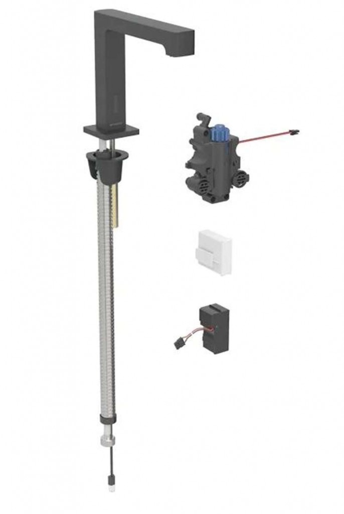 Elektronická baterie, s termostatickým směšovačem, pro funkční box pod omítku barva matná černá materiál pochromovaná mosaz / plast k odběru pitné vody pro veřejný a poloveřejný sektor pro montáž do umyvadla nebo panelů s umyvadlem k montáži do instalačních prvků Geberit pro umyvadlo k montáži do souprav pro hrubou montáž Geberit pro elektronické umyvadlové armatury, stojánkové, s funkčním boxem pod omítku pro připojení studené a teplé vody pro použití s nerezovými dřezy model není vhodný pro průtokový ohřívač napájení ze sítě skupina armatur I podle DIN 4109 automatické spuštění vody nanesená vrstva easy-to-clean smonastavitelné infračervené čidlo pro zaznamenání uživatele odolný proti vandalům omezení průtoku usměrňovačem proudu vody nastavení teploty přes směšovač voda nastavitelná jako ne pouze teplá nebo ne pouze studená termostat dle EN 1111 ochrana proti opaření omezením teploty vody na 42 °C možnost tepelné dezinfekce dle DVGW W 551 napájení pomocí síťového zdroje ekonomický režim provozu nastavitelný úspora vody díky dvouproudové snímací technice s rychlou reakcí funkce je možné servisním dálkovým ovládáním nastavit a dotazovat program úspora vody nastavitelný program intervalu propláchnutí nastavitelný trvalé propláchnutí individuálně nastavitelné ovládání spouštění deaktivovatelné pomocí ovládání pro údržbu Geberit různé funkce ručně nastavitelné se zabudovaným zpětným ventilem funkční jednotka se zabudovanými košíkovými filtry Technické údaje materiál pochromovaná mosaz / plast výška baterie 161 mm komfortní zóna 128 mm délka výtoku: 195 mm druh ochrany IPX4 jmenovité napětí 110 - 240 V AC síťová frekvence 50 - 60 Hz provozní napětí 4,5 V DC příkon 0,1 W provozní tlak 50 - 1000 kPa doporučený provozní tlak s termostatickým směšovačem 0,5 - 5 bar doporučený provozní tlak s termostatickým směšovačem 50 - 500 kPa rozdíl tlaku studená/teplá voda ≤ 150 kPa maximální zkušební tlak vody 1600 kPa maximální zkušební tlak vzduchu / inertního plynu 300 kPa teplota okolí 1 – 40 °C teplota skladování -20 – +70 °C teplota vody - rozsah nastavení s termostatickým směšovačem 20 - 42 °C maximální teplota vody 60 °C maximální teplota vody, krátkodobá 90 °C průtok při tlaku 3 bar 5 l/min výpočtový průtok 0,07 l/s minimální přetlak pro výpočtový průtok 50 kPa interval proplachu, rozsah nastavení 1 - 168 h interval spláchnutí, nastavení ve výrobě 24 h interval proplachu, rozsah nastavení 5 - 200 s interval spláchnutí, nastavení ve výrobě 5 s Obsah dodávky umyvadlová armatura s infračerveným senzorem a hadicí pro přívod vody řídicí elektronika funkční jednotka síťový zdroj klíč pro usměrňovač proudu vody upevňovací materiál Prvek Geberit pro umyvadlo nebo souprava pro hrubou montáž k umyvadlové armatuře Geberit a krycí deska nejsou součástí dodávky.