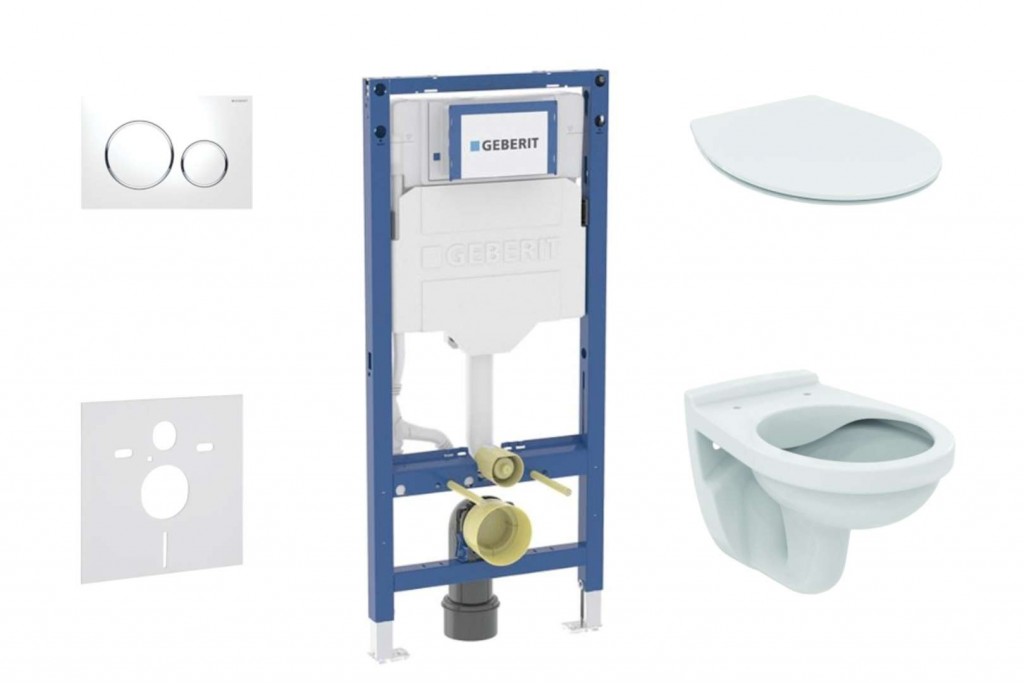 Set předstěnové instalace, klozetu a sedátka Ideal Standard, tlačítka Sigma20, bílá/chrom Obsahuje předstěnový instalační prvek Geberit Duofix, se splachovací nádržkou pod omítku soupravu pro tlumení hluku keramický závěsný klozet Ideal Standard Alpha duroplastové WC sedátko Ideal Standard SoftClose pozvolné, tiché sklápění 2-činné ovládací tlačítko Geberit Sigma20, barva: bílá/chrom Tento instalační set je dostupný v dalších variantách provedení ovládacího tlačítka. Montážní prvek Duofix pro závěsné WC se splachovací nádržkou pod omítku Sigma 12 cm Účel použití pro konstrukce prováděné suchým procesem k montáži do předstěnových instalací částečně vysokých nebo vysokých na výšku místnosti k montáži do instalačních stěn vysokých na výšku místnosti k montáži do systémových stěn Geberit Duofix částečně vysokých nebo vysokých na výšku místnosti pro závěsná WC s připojovacími rozměry podle EN 33 a přesahem do 70 cm pro 1-činné, 2 -činné nebo Start/Stop splachování pro tloušťky podlahy 0–25 cm Vlastnosti samonosný rám s nanesenou práškovou barvou rám připravený pro podpěry u WC keramik s malou opěrnou plochou podpěry pozinkované podpěry s protiskluzovou úpravou patní desky otočné, vhodné pro montáž do U-profilů UW 50 a UW 75 připojovací koleno pro montáž bez nářadí v různých hloubkách, rozsah nastavení 45 mm splachovací nádržka pod omítku izolovaná proti orosování u nastavení z výroby je možné okamžité dodatečné spláchnutí montážní a servisní práce na splachovací nádržce pod omítku bez nářadí přívod vody vzadu nebo nahoře uprostřed kryt pro hrubou montáž pro servisní otvor chrání před vlhkostí a nečistotami kryt pro hrubou montáž pro servisní otvor s možností zkrácení vybaven trubkovou chráničkou pro přívodní potrubí k připojení sprchovacích WC Geberit AquaClean s možností upevnění pro přívod elektřiny Technické údaje tlak při průtoku: 10-1000 kPa maximální teplota vody: 25 °C splachovací množství, nastavení ve výrobě: 6 a 3 l velké splachovací množství, rozsah nastavení: 4 / 4.5 / 6 / 7.5 l malé splachovací množství, rozsah nastavení: 2-4 l výpočtový průtok: 0.09 l/s minimální přetlak pro výpočtový průtok: 10 kPa Obsah dodávky přívod vody R 1/2", vhodný pro MF, s integrovaným rohovým ventilem a ručním ovládacím kolečkem kryt pro hrubou montáž pro servisní otvor připojovací souprava pro WC, Ø 90 mm připojovací koleno 90° z PE-HD, Ø 90 mm přechodka z PE-HD, Ø 90 / 110 mm upevňovací materiál Stavební souprava pro předstěnovou montáž není součástí balení. Závěsný klozet Ideal Standard Alpha rozměry: 355 x 520 mm materiál: sanitární keramika Rimless splachovací technologie Klozetové sedátko s funkcí pomalého sklápění Soft-close materiál: duroplast barva: bílá plastové panty Ovládací tlačítko Sigma20, pro 2 množství splachování rozměry: 246 x 164 mm materiál: plast barva provedení: bílá/chrom k ovládání splachování u splachovacích nádržek pod omítku Geberit Sigma upevňovací rámeček 2 stavitelné úchytky 2 tyčky tlačítka tyčky tlačítka jsou zvukově izolované, rychlé nastavení bez nářadí Stavební souprava pro předstěnovou montáž není součástí dodávky, je třeba objednat zvlášť.