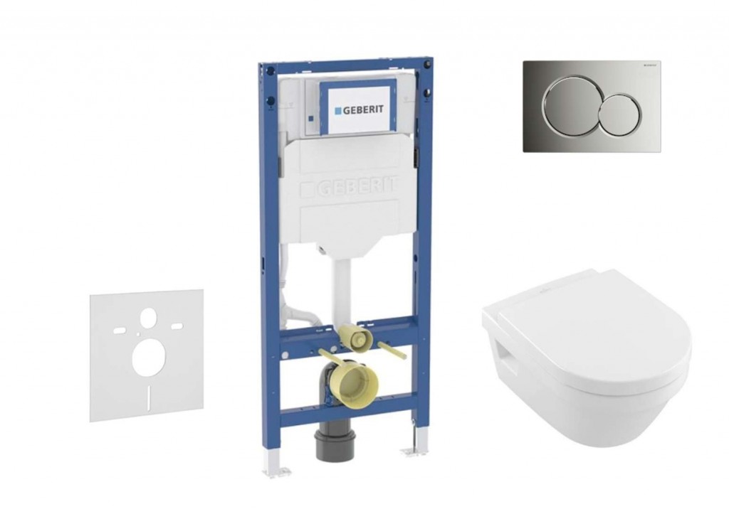 Set předstěnové instalace, klozetu a sedátka Villeroy & Boch, tlačítka Sigma01, lesklý chrom Obsahuje předstěnový instalační prvek Geberit Duofix (111.300.00.6), se splachovací nádržkou pod omítku soupravu pro tlumení hluku (SP 156SET) keramický závěsný klozet Villeroy & Boch Omnia Architectura DirectFlush technologie bezokrajového splachování AquaReduct technologie pro úsporu vody CeramicPlus povrchová úprava keramické glazury, která zajišťuje optimální hygienu a čistotu duroplastové WC sedátko Villeroy & Boch Omnia Architectura nerezové úchyty s QuickRelease SoftClose pozvolné, tiché sklápění 2-činné ovládací tlačítko Geberit Sigma01, barva: lesklý chrom stavební souprava pro předstěnovou montáž není součástí dodávky, je třeba objednat zvlášť Tento instalační set je dostupný v dalších variantách provedení ovládacího tlačítka. Montážní prvek Duofix pro závěsné WC se splachovací nádržkou pod omítku Sigma 12 cm Účel použití pro konstrukce prováděné suchým procesem k montáži do předstěnových instalací částečně vysokých nebo vysokých na výšku místnosti k montáži do instalačních stěn vysokých na výšku místnosti k montáži do systémových stěn Geberit Duofix částečně vysokých nebo vysokých na výšku místnosti pro závěsná WC s připojovacími rozměry podle EN 33 a přesahem do 70 cm pro 1-činné, 2 -činné nebo Start/Stop splachování pro tloušťky podlahy 0–25 cm Vlastnosti samonosný rám s nanesenou práškovou barvou rám připravený pro podpěry u WC keramik s malou opěrnou plochou podpěry pozinkované podpěry s protiskluzovou úpravou patní desky otočné, vhodné pro montáž do U-profilů UW 50 a UW 75 připojovací koleno pro montáž bez nářadí v různých hloubkách, rozsah nastavení 45 mm splachovací nádržka pod omítku izolovaná proti orosování u nastavení z výroby je možné okamžité dodatečné spláchnutí montážní a servisní práce na splachovací nádržce pod omítku bez nářadí přívod vody vzadu nebo nahoře uprostřed kryt pro hrubou montáž pro servisní otvor chrání před vlhkostí a nečistotami kryt pro hrubou montáž pro servisní otvor s možností zkrácení vybaven trubkovou chráničkou pro přívodní potrubí k připojení sprchovacích WC Geberit AquaClean s možností upevnění pro přívod elektřiny Technické údaje tlak při průtoku: 10-1000 kPa maximální teplota vody: 25 °C splachovací množství, nastavení ve výrobě: 6 a 3 l velké splachovací množství, rozsah nastavení: 4 / 4.5 / 6 / 7.5 l malé splachovací množství, rozsah nastavení: 2-4 l výpočtový průtok: 0.09 l/s minimální přetlak pro výpočtový průtok: 10 kPa Obsah dodávky přívod vody R 1/2", vhodný pro MF, s integrovaným rohovým ventilem a ručním ovládacím kolečkem kryt pro hrubou montáž pro servisní otvor připojovací souprava pro WC, Ø 90 mm připojovací koleno 90° z PE-HD, Ø 90 mm přechodka z PE-HD, Ø 90 / 110 mm upevňovací materiál Závěsný klozet Villeroy & Boch Omnia Architectura rozměry: 370 x 530 mm materiál: sanitární keramika DirectFlush technologie bezokrajového splachování AquaReduct technologie pro úsporu vody hluboké splachování, objem: 3 / 4,5 l CeramicPlus povrchová úprava keramické glazury, která zajišťuje optimální hygienu a čistotu upevnění: 2 závrtné šrouby M12 x 150 mm Ovládací tlačítko Sigma01, pro 2 množství splachování rozměry: 246 x 164 mm materiál: plast barva provedení: lesklý chrom k ovládání splachování u splachovacích nádržek pod omítku Geberit Sigma upevňovací rámeček 2 stavitelné úchytky 2 tyčky tlačítka tyčky tlačítka jsou zvukově izolované, rychlé nastavení bez nářadí