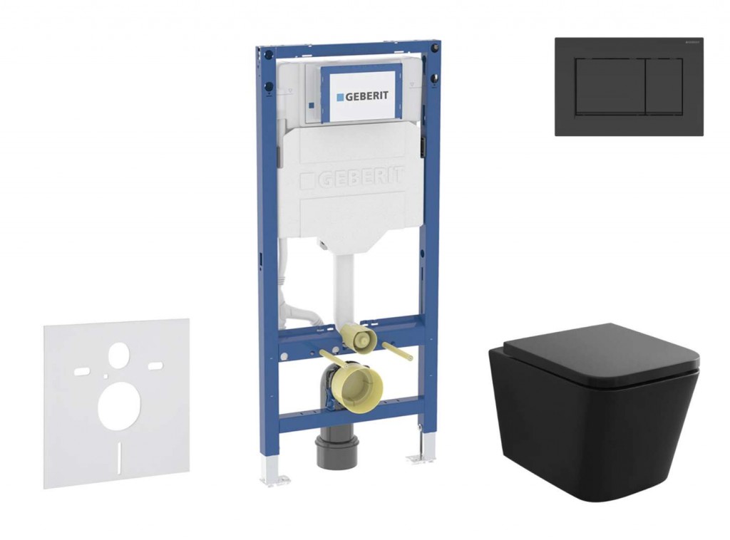 Set obsahuje předstěnový instalační modul Geberit Duofix se splachovací nádržkou pod omítku keramický závěsný klozet kielle Arkas se sedátkem SoftClose ovládací tlačítko Geberit Sigma30 pro 2-činné splachování soupravu pro tlumení hluku Předstěnový instalační modul Duofix pro závěsné WC se splachovací nádržkou Sigma 12 cm pro konstrukce prováděné suchým procesem k montáži do předstěnových instalací částečně vysokých nebo vysokých na výšku místnosti k montáži do instalačních stěn vysokých na výšku místnosti k montáži do systémových stěn Geberit Duofix částečně vysokých nebo vysokých na výšku místnosti pro závěsná WC s připojovacími rozměry podle EN 33 a přesahem do 70 cm pro 1-činné, 2 -činné nebo Start/Stop splachování pro tloušťky podlahy 0–25 cm Vlastnosti samonosný rám s nanesenou práškovou barvou rám připravený pro podpěry u WC keramik s malou opěrnou plochou podpěry pozinkované podpěry s protiskluzovou úpravou patní desky otočné, vhodné pro montáž do U-profilů UW 50 a UW 75 připojovací koleno pro montáž bez nářadí v různých hloubkách, rozsah nastavení 45 mm splachovací nádržka pod omítku izolovaná proti orosování u nastavení z výroby je možné okamžité dodatečné spláchnutí montážní a servisní práce na splachovací nádržce pod omítku bez nářadí přívod vody vzadu nebo nahoře uprostřed kryt pro hrubou montáž pro servisní otvor chrání před vlhkostí a nečistotami kryt pro hrubou montáž pro servisní otvor s možností zkrácení vybaven trubkovou chráničkou pro přívodní potrubí k připojení sprchovacích WC Geberit AquaClean s možností upevnění pro přívod elektřiny Technické údaje tlak při průtoku: 10-1000 kPa maximální teplota vody: 25 °C splachovací množství, nastavení ve výrobě: 6 a 3 l velké splachovací množství, rozsah nastavení: 4 / 4.5 / 6 / 7.5 l malé splachovací množství, rozsah nastavení: 2-4 l výpočtový průtok: 0.09 l/s minimální přetlak pro výpočtový průtok: 10 kPa Obsah dodávky přívod vody R 1/2", vhodný pro MF, s integrovaným rohovým ventilem a ručním ovládacím kolečkem kryt pro hrubou montáž pro servisní otvor připojovací souprava pro WC, Ø 90 mm připojovací koleno 90° z PE-HD, Ø 90 mm přechodka z PE-HD, Ø 90 / 110 mm upevňovací materiál Závěsné WC Arkas barva: matná černá rozměry: 350 x 505 mm Rimless bezokrajové provedení skryté upevnění hluboké splachování splachovací objem 4/6 l WC sedátko barva: černá s funkcí pomalého sklápění SoftClose lehce odnímatelné pro snadnou údržbu Ovládací tlačítko Sigma30 pro 2-činné splachování materiál: plast deska a ovládací tlačítko: lakování matné černé, potažené vrstvou easy-to-clean designové proužky: černé rozměry: 246 x 164 x 12 mm ovládání zepředu, ovládací síla < 20 N tyčky tlačítka jsou zvukově izolované, rychlé nastavení bez použití nářadí možné kombinovat se soupravou pro vhazování WC tyčinek DuoFresh, pro odsávání zápachu obsahuje: upevňovací rámeček, 2 stavitelné úchytky, 2 tyčky tlačítka Protihluková sada pro závěsné WC nebo závěsný bidet pro montáž keramiky se vzdáleností upevnění 18 cm nebo 23 cm přerušuje přenos hluku u WC a bidetu materiál: polyetylén-pěna obsahuje: 1x zvukově izolační vložku, 2x podložku