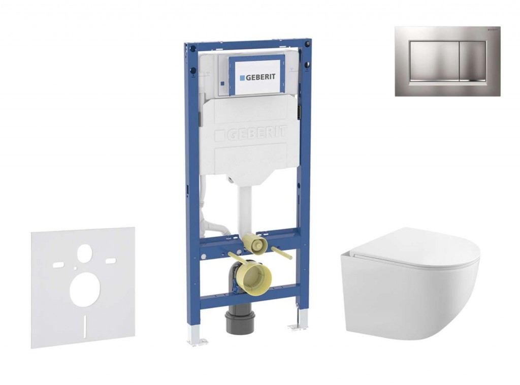 Set obsahuje předstěnový instalační modul Geberit Duofix se splachovací nádržkou pod omítku kompaktní závěsný klozet kielle Gaia se sedátkem SoftClose ovládací tlačítko Geberit Sigma30 pro 2-činné splachování soupravu pro tlumení hluku Předstěnový instalační modul Duofix pro závěsné WC se splachovací nádržkou Sigma 12 cm pro konstrukce prováděné suchým procesem k montáži do předstěnových instalací částečně vysokých nebo vysokých na výšku místnosti k montáži do instalačních stěn vysokých na výšku místnosti k montáži do systémových stěn Geberit Duofix částečně vysokých nebo vysokých na výšku místnosti pro závěsná WC s připojovacími rozměry podle EN 33 a přesahem do 70 cm pro 1-činné, 2 -činné nebo Start/Stop splachování pro tloušťky podlahy 0–25 cm Vlastnosti samonosný rám s nanesenou práškovou barvou rám připravený pro podpěry u WC keramik s malou opěrnou plochou podpěry pozinkované podpěry s protiskluzovou úpravou patní desky otočné, vhodné pro montáž do U-profilů UW 50 a UW 75 připojovací koleno pro montáž bez nářadí v různých hloubkách, rozsah nastavení 45 mm splachovací nádržka pod omítku izolovaná proti orosování u nastavení z výroby je možné okamžité dodatečné spláchnutí montážní a servisní práce na splachovací nádržce pod omítku bez nářadí přívod vody vzadu nebo nahoře uprostřed kryt pro hrubou montáž pro servisní otvor chrání před vlhkostí a nečistotami kryt pro hrubou montáž pro servisní otvor s možností zkrácení vybaven trubkovou chráničkou pro přívodní potrubí k připojení sprchovacích WC Geberit AquaClean s možností upevnění pro přívod elektřiny Technické údaje tlak při průtoku: 10-1000 kPa maximální teplota vody: 25 °C splachovací množství, nastavení ve výrobě: 6 a 3 l velké splachovací množství, rozsah nastavení: 4 / 4.5 / 6 / 7.5 l malé splachovací množství, rozsah nastavení: 2-4 l výpočtový průtok: 0.09 l/s minimální přetlak pro výpočtový průtok: 10 kPa Obsah dodávky přívod vody R 1/2", vhodný pro MF, s integrovaným rohovým ventilem a ručním ovládacím kolečkem kryt pro hrubou montáž pro servisní otvor připojovací souprava pro WC, Ø 90 mm připojovací koleno 90° z PE-HD, Ø 90 mm přechodka z PE-HD, Ø 90 / 110 mm upevňovací materiál Kompaktní závěsné WC Gaia barva: bílá rozměry: 360 x 485 mm Rimless bezokrajové provedení skryté upevnění hluboké splachování splachovací objem 4/6 l WC sedátko barva: bílá s funkcí pomalého sklápění SoftClose lehce odnímatelné pro snadnou údržbu Ovládací tlačítko Sigma30, pro 2-činné splachování k ovládání splachování u splachovacích nádržek pod omítku Geberit Sigma ovládání zepředu tyčky tlačítka zvukově izolované, rychlé nastavení bez nářadí rozměry: 246 x 164 mm materiál: plast provedení desky a tlačítek: matný chrom lakovaný, vrstva easy-to-clean, designový proužek: lesklý chrom ovládací síla: < 20 N obsahuje: upevňovací rámeček, 2 stavitelné úchytky, 2 tyčky tlačítka Protihluková sada pro závěsné WC nebo závěsný bidet pro montáž keramiky se vzdáleností upevnění 18 cm nebo 23 cm přerušuje přenos hluku u WC a bidetu materiál: polyetylén-pěna obsahuje: 1x zvukově izolační vložku, 2x podložku