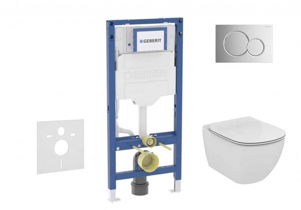 Kompletní instalační set pro závěsné WC AQUABLADE® inovativní technologie splachování SoftClose mechanismus pozvolného sklápění sedátka tento instalační set je dostupný také v dalších variantách provedení ovládacího tlačítka Obsahuje předstěnový instalační prvek Geberit Duofix (111.300.00.6), se splachovací nádržkou pod omítku Sigma 12 cm soupravu pro tlumení hluku (SP 156SET) závěsné WC Ideal Standard Tesi ultraploché WC sedátko Ideal Standard Tesi 2-činné ovládací tlačítko Geberit Sigma01, lesklý chrom stavební souprava pro předstěnovou montáž není součástí dodávky, je třeba objednat zvlášť Montážní prvek Duofix pro závěsné WC se splachovací nádržkou pod omítku Sigma 12 cm Účel použití pro konstrukce prováděné suchým procesem k montáži do předstěnových instalací částečně vysokých nebo vysokých na výšku místnosti k montáži do instalačních stěn vysokých na výšku místnosti k montáži do systémových stěn Geberit Duofix částečně vysokých nebo vysokých na výšku místnosti pro závěsná WC s připojovacími rozměry podle EN 33 a přesahem do 70 cm pro 1-činné, 2 -činné nebo Start/Stop splachování pro tloušťky podlahy 0–25 cm Vlastnosti samonosný rám s nanesenou práškovou barvou rám připravený pro podpěry u WC keramik s malou opěrnou plochou podpěry pozinkované podpěry s protiskluzovou úpravou patní desky otočné, vhodné pro montáž do U-profilů UW 50 a UW 75 připojovací koleno pro montáž bez nářadí v různých hloubkách, rozsah nastavení 45 mm splachovací nádržka pod omítku izolovaná proti orosování u nastavení z výroby je možné okamžité dodatečné spláchnutí montážní a servisní práce na splachovací nádržce pod omítku bez nářadí přívod vody vzadu nebo nahoře uprostřed kryt pro hrubou montáž pro servisní otvor chrání před vlhkostí a nečistotami kryt pro hrubou montáž pro servisní otvor s možností zkrácení vybaven trubkovou chráničkou pro přívodní potrubí k připojení sprchovacích WC Geberit AquaClean s možností upevnění pro přívod elektřiny Technické údaje tlak při průtoku: 10-1000 kPa maximální teplota vody: 25 °C splachovací množství, nastavení ve výrobě: 6 a 3 l velké splachovací množství, rozsah nastavení: 4 / 4.5 / 6 / 7.5 l malé splachovací množství, rozsah nastavení: 2-4 l výpočtový průtok: 0.09 l/s minimální přetlak pro výpočtový průtok: 10 kPa Obsah dodávky přívod vody R 1/2", vhodný pro MF, s integrovaným rohovým ventilem a ručním ovládacím kolečkem kryt pro hrubou montáž pro servisní otvor připojovací souprava pro WC, Ø 90 mm připojovací koleno 90° z PE-HD, Ø 90 mm přechodka z PE-HD, Ø 90 / 110 mm upevňovací materiál Stavební souprava pro předstěnovou montáž není součástí balení. Set závěsného WC a ultra plochého sedátka Závěsný klozet s inovativní splachovací technologií AQUABLADE® pro podomítkovou nádržku se splachovací kapacitou od 4,5 l instalace: s podomítkovým modulem do zdi nebo do sádrokartonové příčky rozměry: 360 x 400 x 530 mm materiál: sanitární keramika skryté upevnění glazovaný kruh hluboké splachování WC sedátko s funkcí pomalého sklápění SoftClose barva: bílá lehce odnímatelné pro snadnou údržbu Ovládací tlačítko Sigma01, pro 2 množství splachování rozměry: 246 x 164 mm materiál: plast barva provedení: lesklý chrom k ovládání splachování u splachovacích nádržek pod omítku Geberit Sigma upevňovací rámeček 2 stavitelné úchytky 2 tyčky tlačítka tyčky tlačítka jsou zvukově izolované, rychlé nastavení bez nářadí