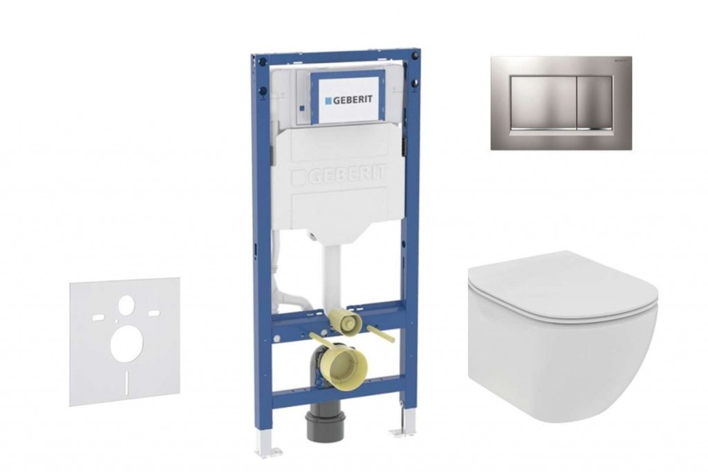 Set předstěnové instalace, klozetu a sedátka Ideal Standard Tesi, tlačítka Sigma30, chrom mat/chrom Obsahuje předstěnový instalační prvek Geberit Duofix, se splachovací nádržkou pod omítku soupravu pro tlumení hluku keramický závěsný klozet Ideal Standard Tesi s technologií RimLS+ WC sedátko Ideal Standard Tesi s technologí SoftClose 2-činné ovládací tlačítko Geberit Sigma30, barva: chrom mat/chrom stavební souprava pro předstěnovou montáž není součástí dodávky, je třeba objednat zvlášť Tento instalační set je dostupný v dalších variantách provedení ovládacího tlačítka. Montážní prvek Duofix pro závěsné WC se splachovací nádržkou pod omítku Sigma 12 cm Účel použití pro konstrukce prováděné suchým procesem k montáži do předstěnových instalací částečně vysokých nebo vysokých na výšku místnosti k montáži do instalačních stěn vysokých na výšku místnosti k montáži do systémových stěn Geberit Duofix částečně vysokých nebo vysokých na výšku místnosti pro závěsná WC s připojovacími rozměry podle EN 33 a přesahem do 70 cm pro 1-činné, 2 -činné nebo Start/Stop splachování pro tloušťky podlahy 0–25 cm Vlastnosti samonosný rám s nanesenou práškovou barvou rám připravený pro podpěry u WC keramik s malou opěrnou plochou podpěry pozinkované podpěry s protiskluzovou úpravou patní desky otočné, vhodné pro montáž do U-profilů UW 50 a UW 75 připojovací koleno pro montáž bez nářadí v různých hloubkách, rozsah nastavení 45 mm splachovací nádržka pod omítku izolovaná proti orosování u nastavení z výroby je možné okamžité dodatečné spláchnutí montážní a servisní práce na splachovací nádržce pod omítku bez nářadí přívod vody vzadu nebo nahoře uprostřed kryt pro hrubou montáž pro servisní otvor chrání před vlhkostí a nečistotami kryt pro hrubou montáž pro servisní otvor s možností zkrácení vybaven trubkovou chráničkou pro přívodní potrubí k připojení sprchovacích WC Geberit AquaClean s možností upevnění pro přívod elektřiny Technické údaje tlak při průtoku: 10-1000 kPa maximální teplota vody: 25 °C splachovací množství, nastavení ve výrobě: 6 a 3 l velké splachovací množství, rozsah nastavení: 4 / 4.5 / 6 / 7.5 l malé splachovací množství, rozsah nastavení: 2-4 l výpočtový průtok: 0.09 l/s minimální přetlak pro výpočtový průtok: 10 kPa Obsah dodávky přívod vody R 1/2", vhodný pro MF, s integrovaným rohovým ventilem a ručním ovládacím kolečkem kryt pro hrubou montáž pro servisní otvor připojovací souprava pro WC, Ø 90 mm připojovací koleno 90° z PE-HD, Ø 90 mm přechodka z PE-HD, Ø 90 / 110 mm upevňovací materiál Stavební souprava pro předstěnovou montáž není součástí balení. Závěsný klozet Ideal Standard Tesi barva: bílá materiál: sanitární keramika s technologií bezokrajového splachování RimLS+ šířka: 365 mm hloubka: 400 mm délka: 535 mm skryté upevnění hluboké splachování WC sedátko s funkcí pomalého sklápění SoftClose barva: bílá Ovládací tlačítko Sigma30, pro 2 množství splachování rozměry: 246 x 164 mm materiál: plast barva provedení: chrom mat/chrom k ovládání splachování u splachovacích nádržek pod omítku Geberit Sigma upevňovací rámeček 2 stavitelné úchytky 2 tyčky tlačítka tyčky tlačítka jsou zvukově izolované, rychlé nastavení bez nářadí